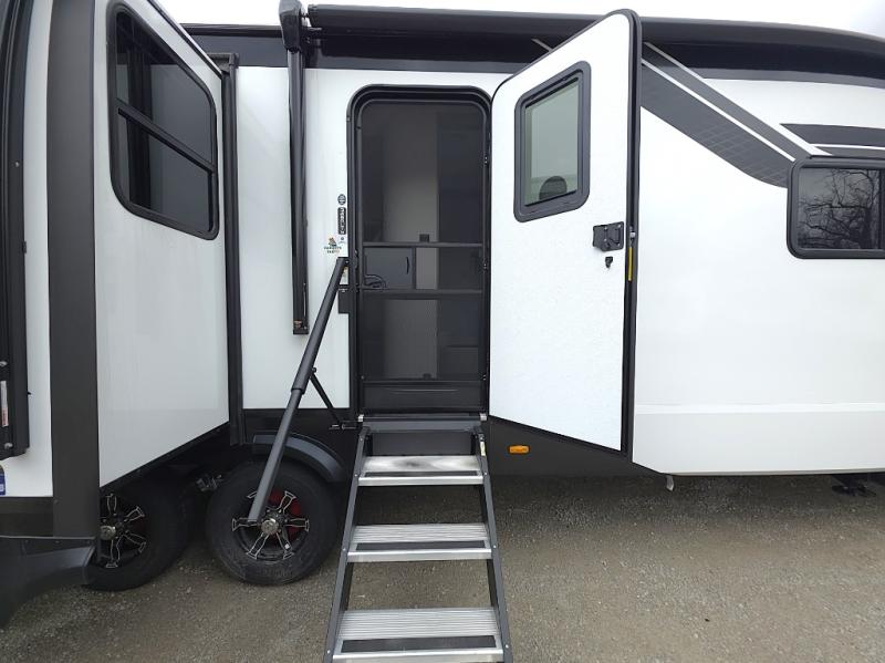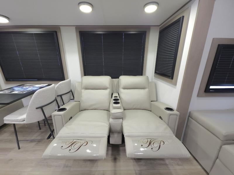 Kitchen Island, Theater Seating, King Bed Upgrade, Swivel Dinette w/ 2 Chairs & Ottoman, 2 Power Awnings - Campers Inn RV of Louisville 812-282-7718