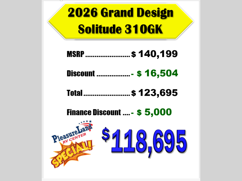New 2026 Grand Design Solitude 310GK Fifth Wheel