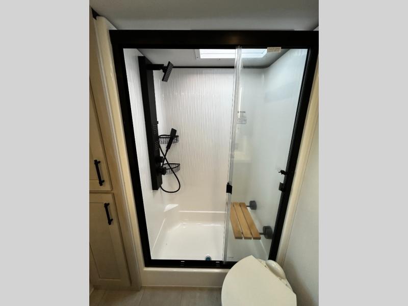 Each Solitude fifth wheel by Grand Design features a 101" wide-body construction, heavy duty 8,000 lb. axles, frameless tinted windows, and high-gloss gel coat sidewalls. You can camp year around thanks to the Weather-Tek Package that includes a 35K BTU high-capacity furnace, an all-in-one enclosed and heated utility center, and a fully enclosed underbelly with heated tanks and storage. Inside, you'll love the premium roller shades, hardwood cabinet doors, solid surface countertops, plus residential finishes throughout to make you truly feel at home. Each model also includes a MORryde CRE3000 suspension system, self adjusting brakes, and a MORryde pin box that will provide smooth towing from home to campground. Affordable luxury is possible with the Solitude fifth wheels; choose yours today!