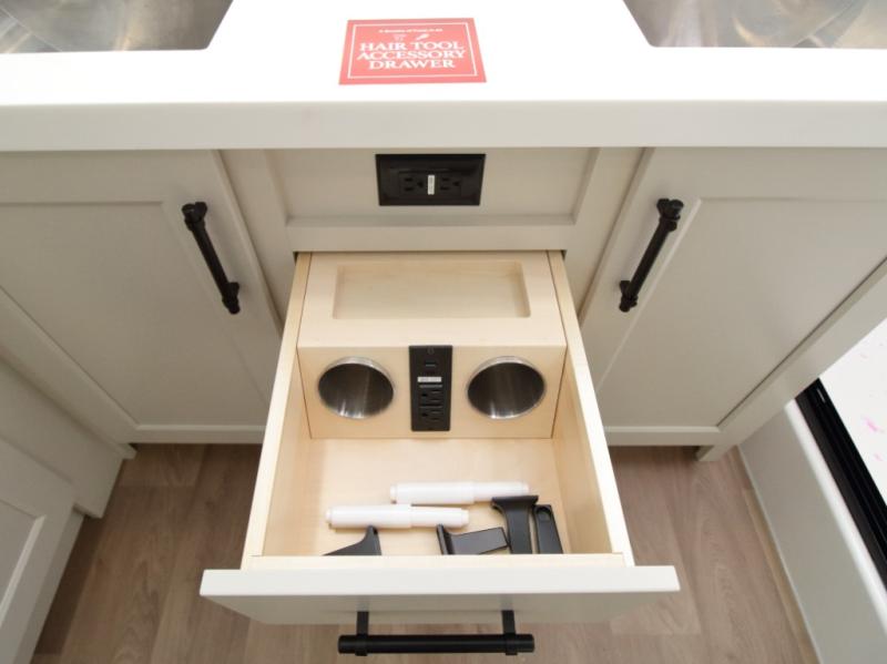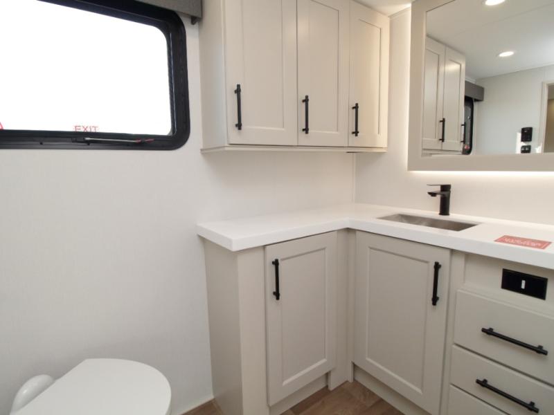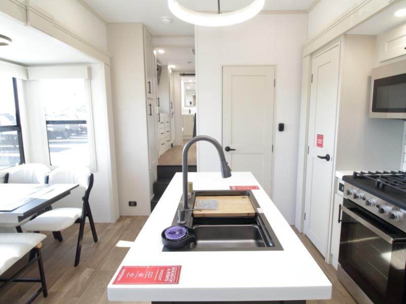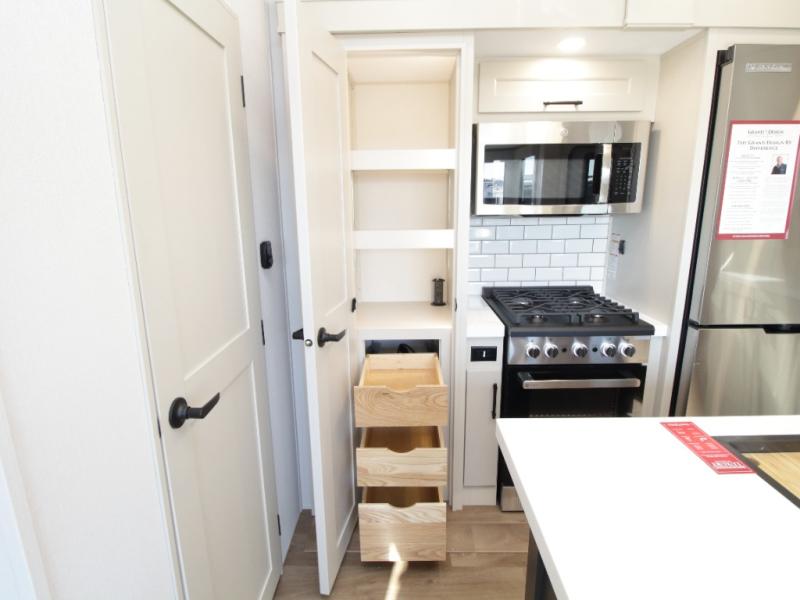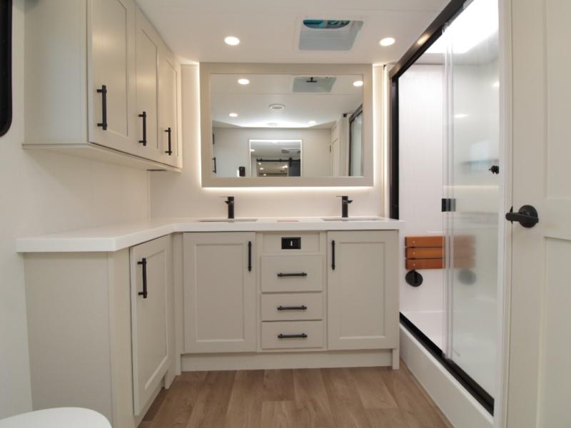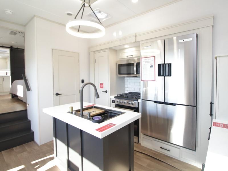 Dual-Sink Vanity • Full and Half Bath • Front Living Room • Kitchen Island • Exterior Sliding Tray