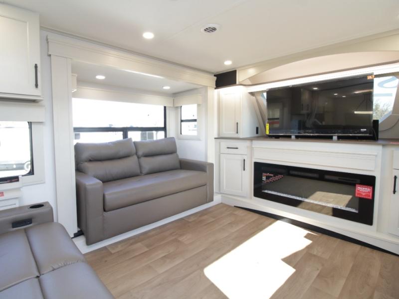 The dedicated front living area creates a true home-style atmosphere for relaxing and entertaining. Features include: