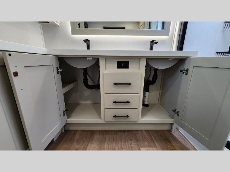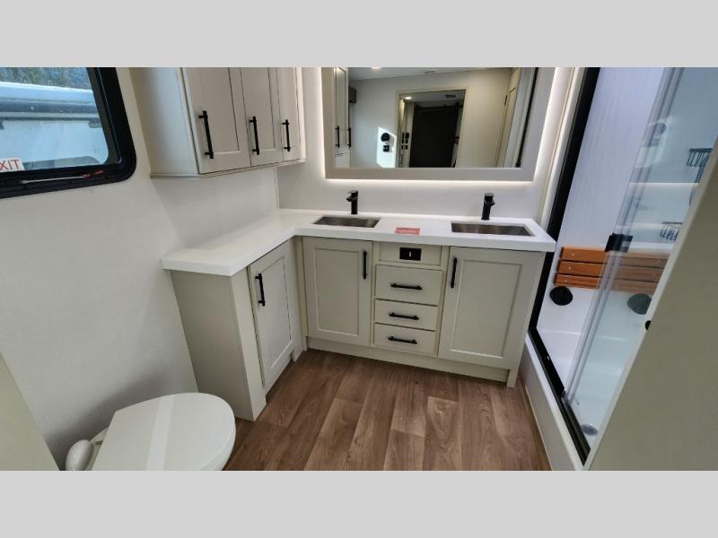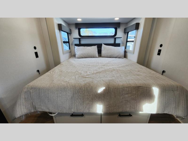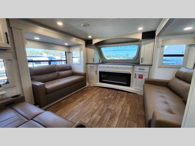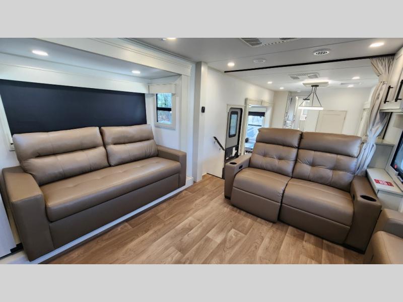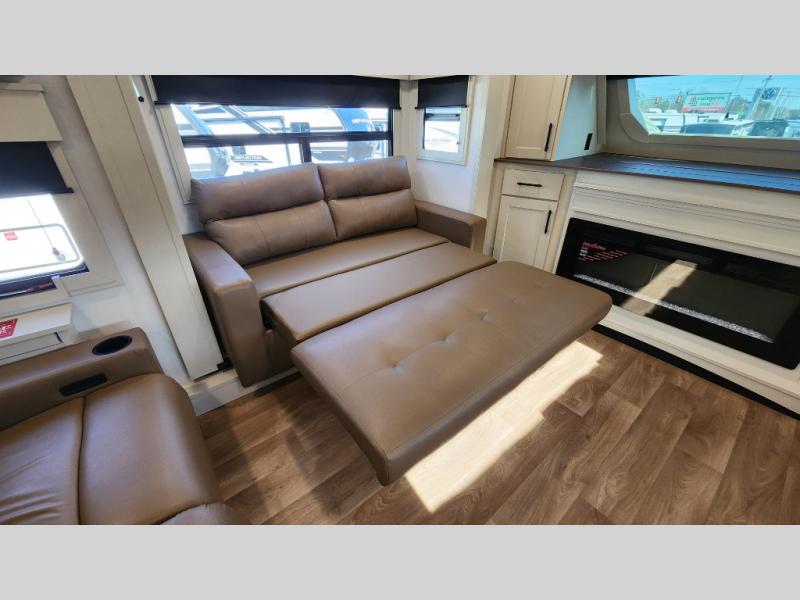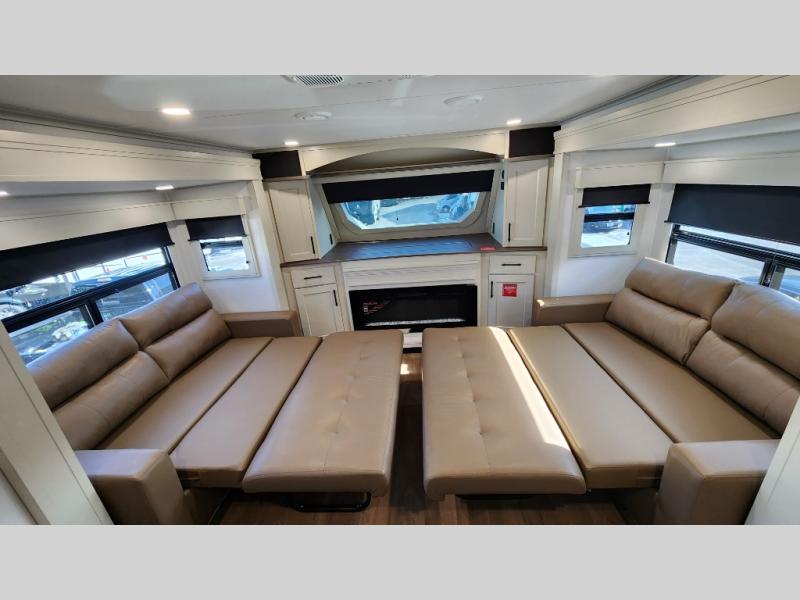 This layout provides true separation between living and sleeping areas, creating a residential feel rarely found in RVs.