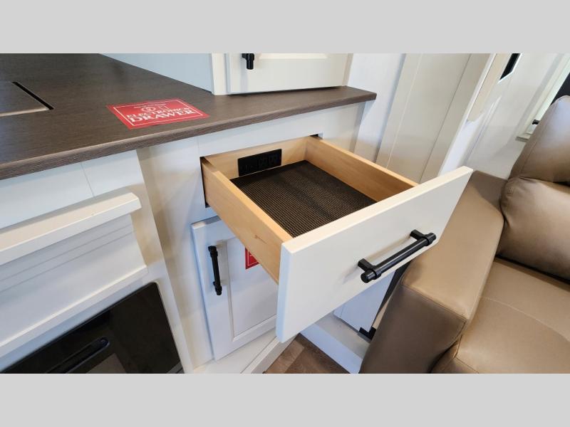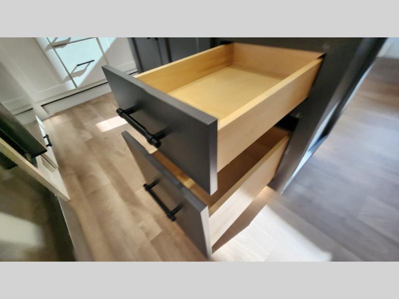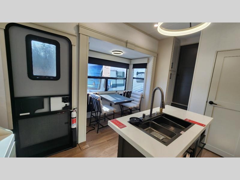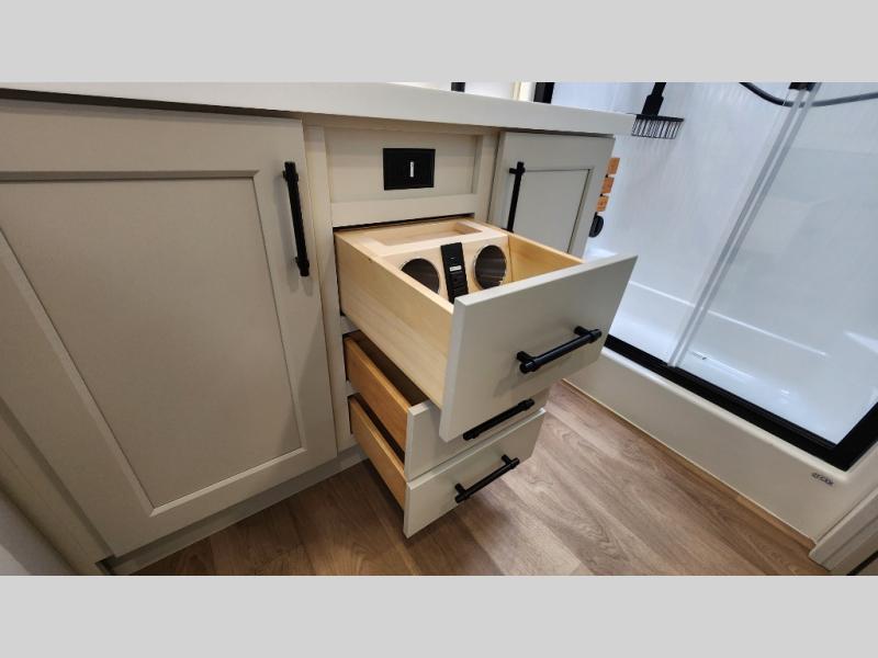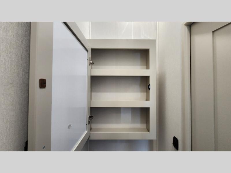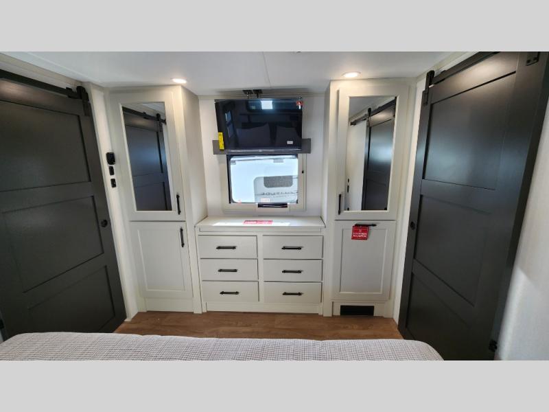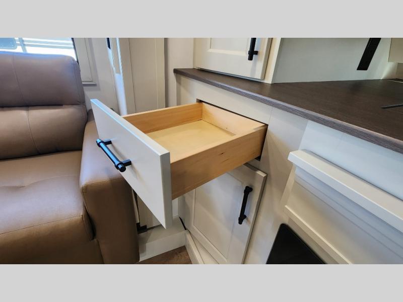 This layout provides true separation between living and sleeping areas, creating a residential feel rarely found in RVs.