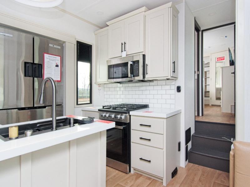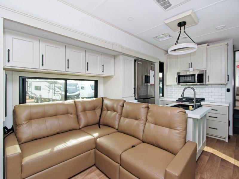 If you’re looking for more space and comfort, the Grand Design Solitude is the most spacious extended-stay fifth wheel ever built. With taller ceilings, oversized cabinets, and a panoramic scenic window, Solitude delivers a residential feel that makes every destination feel like home.