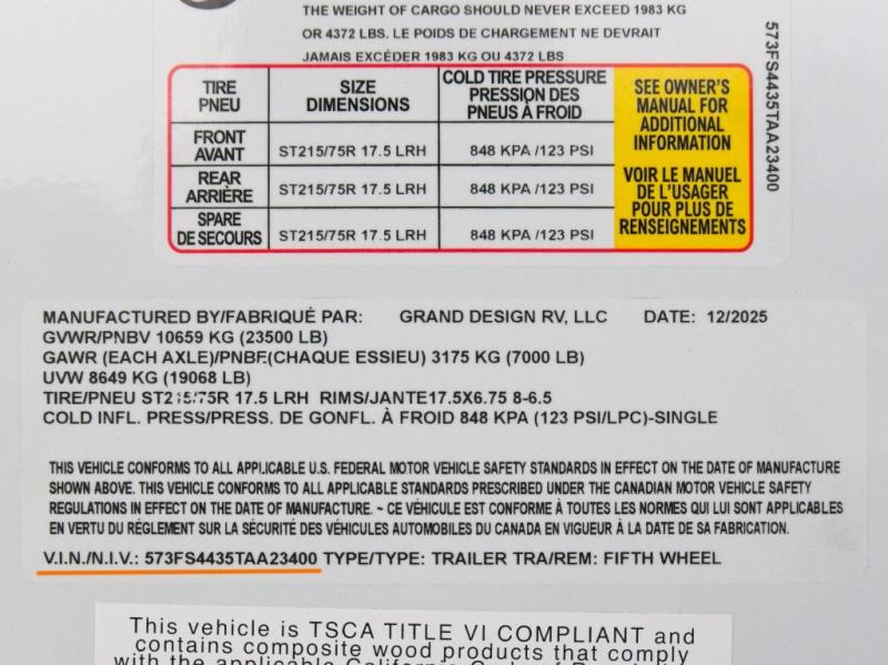 Our Price is Lower than This! Grand Design does not allow us to display it but Call for Pricing Details! ORDER OPTIONS: New Omega Fifth Wheel Frame; Worry-Free Roof; MORryde Premium Independent Suspension; Whole House Water Filtration System