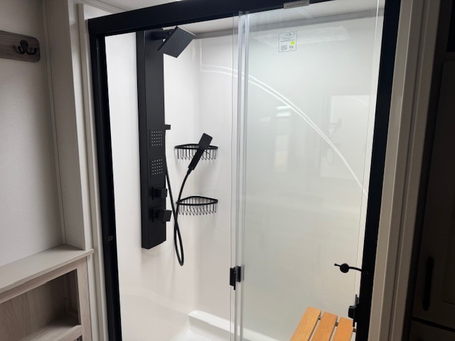 Comfort will come easy in this four slide out fifth wheel! You will feel right at home with a master bedroom that includes a queen bed slide out with a king bed option, dual dressers with a seat in between, plus a large front bath with tons of space. The convenient half bath is right as you enter the unit for convenience. Your crew can get cozy on the dual tri-fold sofas within dual opposing slides, or on the theater seating across from the LED TV and fireplace. One feature you will love about this fifth wheel is the rear kitchen with wrap-around counter space, a built-in oven, plus a 20 cu. ft. 12V refrigerator and a large pantry to keep food fresh.