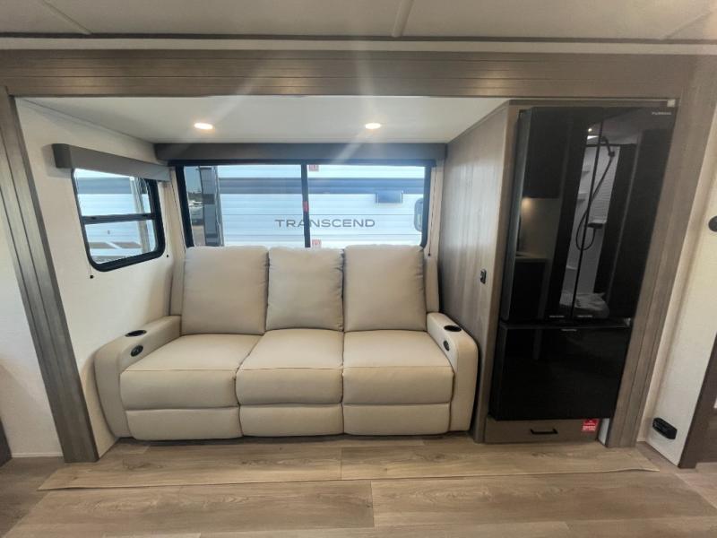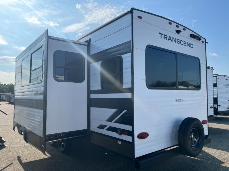 With any Transcend travel trailer by Grand Design, you will enjoy upscale appointments and convenient amenities to make each camping experience one to remember! The Quad Seal technology, residential insulated walls, plus heated and enclosed underbelly with suspended tanks make these units solid and durable. There is a black automotive glass door outside, along with a Safe-T-Rail assist on the main entry door, backup camera prep, and a universal docking station. JBL interior and exterior speakers plus a JBL head unit will let you listen to your favorite tunes as you visit under the power awning with LED strip lights. Inside, you'll enjoy multiple outlets to keep your gadgets charged, thermoformed and seamless countertops, and a 6' 6" interior height so you won't feel closed in. The Solar Prep Package will allow you to enjoy off-grid capabilities with a 200W solar panel, which is wired for up to 600W, a 30 AMP Bluetooth solar controller, a 2000W inverter prep, and more!