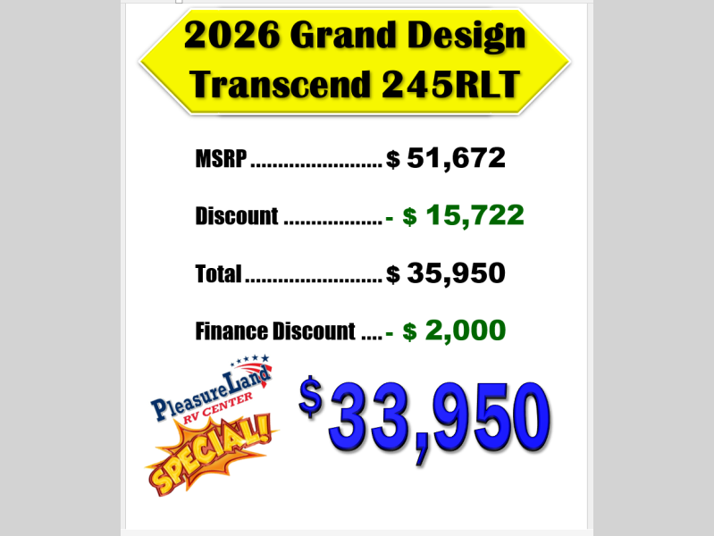 New 2026 Grand Design Transcend 245RLT Travel Trailer