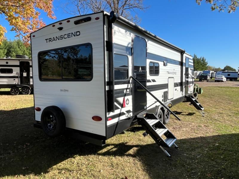 With any Transcend travel trailer by Grand Design, you will enjoy upscale appointments and convenient amenities to make each camping experience one to remember! The Quad Seal technology, residential insulated walls, plus heated and enclosed underbelly with suspended tanks make these units solid and durable. There is a black automotive glass door outside, along with a Safe-T-Rail assist on the main entry door, backup camera prep, and a universal docking station. JBL interior and exterior speakers plus a JBL head unit will let you listen to your favorite tunes as you visit under the power awning with LED strip lights. Inside, you'll enjoy multiple outlets to keep your gadgets charged, thermoformed and seamless countertops, and a 6' 6" interior height so you won't feel closed in. The Solar Prep Package will allow you to enjoy off-grid capabilities with a 200W solar panel, which is wired for up to 600W, a 30 AMP Bluetooth solar controller, a 2000W inverter prep, and more!