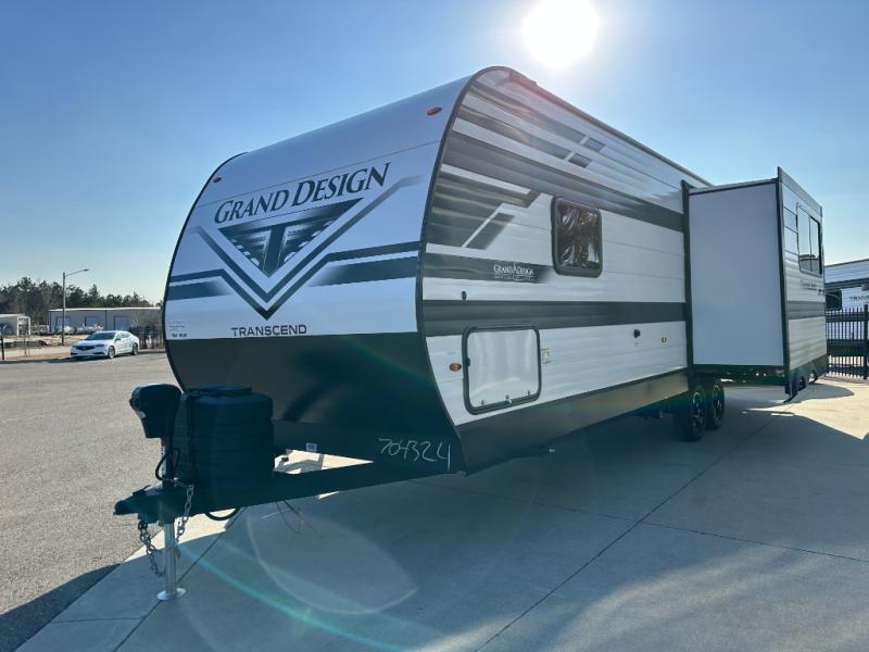 With any Transcend travel trailer by Grand Design, you will enjoy upscale appointments and convenient amenities to make each camping experience one to remember! The Quad Seal technology, residential insulated walls, plus heated and enclosed underbelly with suspended tanks make these units solid and durable. There is a black automotive glass door outside, along with a Safe-T-Rail assist on the main entry door, backup camera prep, and a universal docking station. JBL interior and exterior speakers plus a JBL head unit will let you listen to your favorite tunes as you visit under the power awning with LED strip lights. Inside, you'll enjoy multiple outlets to keep your gadgets charged, thermoformed and seamless countertops, and a 6' 6" interior height so you won't feel closed in. The Solar Prep Package will allow you to enjoy off-grid capabilities with a 200W solar panel, which is wired for up to 600W, a 30 AMP Bluetooth solar controller, a 2000W inverter prep, and more!