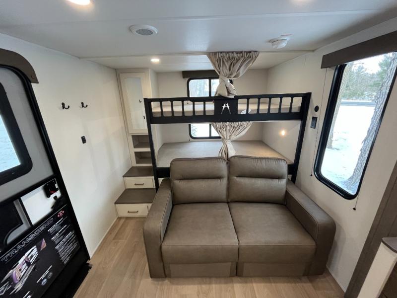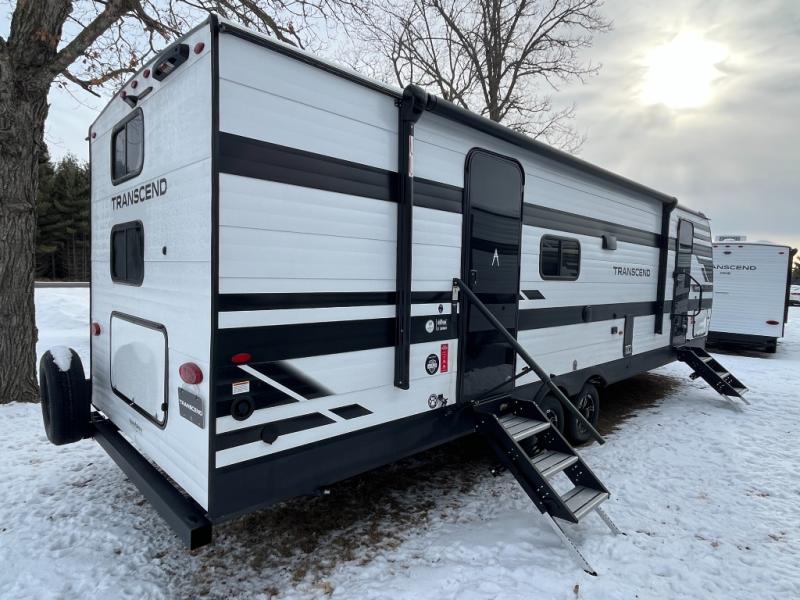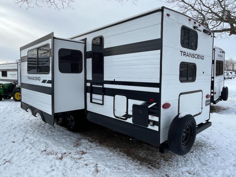 With any Transcend travel trailer by Grand Design, you will enjoy upscale appointments and convenient amenities to make each camping experience one to remember! The Quad Seal technology, residential insulated walls, plus heated and enclosed underbelly with suspended tanks make these units solid and durable. There is a black automotive glass door outside, along with a Safe-T-Rail assist on the main entry door, backup camera prep, and a universal docking station. JBL interior and exterior speakers plus a JBL head unit will let you listen to your favorite tunes as you visit under the power awning with LED strip lights. Inside, you'll enjoy multiple outlets to keep your gadgets charged, thermoformed and seamless countertops, and a 6' 6" interior height so you won't feel closed in. The Solar Prep Package will allow you to enjoy off-grid capabilities with a 200W solar panel, which is wired for up to 600W, a 30 AMP Bluetooth solar controller, a 2000W inverter prep, and more!