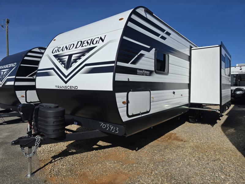 With any Transcend travel trailer by Grand Design, you will enjoy upscale appointments and convenient amenities to make each camping experience one to remember! The Quad Seal technology, residential insulated walls, plus heated and enclosed underbelly with suspended tanks make these units solid and durable. There is a black automotive glass door outside, along with a Safe-T-Rail assist on the main entry door, backup camera prep, and a universal docking station. JBL interior and exterior speakers plus a JBL head unit will let you listen to your favorite tunes as you visit under the power awning with LED strip lights. Inside, you'll enjoy multiple outlets to keep your gadgets charged, thermoformed and seamless countertops, and a 6' 6" interior height so you won't feel closed in. The Solar Prep Package will allow you to enjoy off-grid capabilities with a 200W solar panel, which is wired for up to 600W, a 30 AMP Bluetooth solar controller, a 2000W inverter prep, and more!