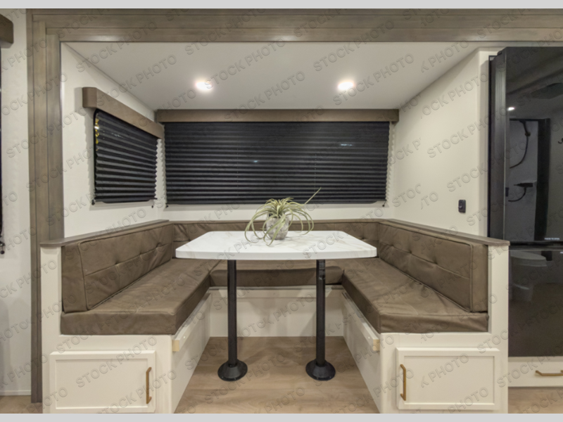 Your crew of eight will love camping in this spacious travel trailer! There are double-size bunks in the back with step storage and an added wardrobe for your guests' things plus exterior storage for camp gear galore. A walk-thru bath will create a front master bedroom you are sure to love, especially with its queen bed, wardrobe storage, and private exterior entry door! The main living area will be a favorite place to hang out with its U-shaped dinette, theater seating and 32" TV. If the weather is nice, you may just find yourselves outdoors since there is a rear exterior griddle and 1.7 cu. ft. refrigerator!