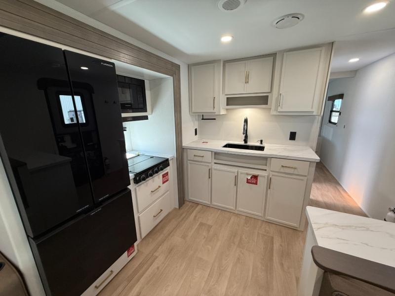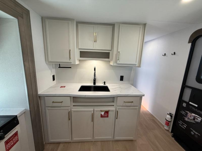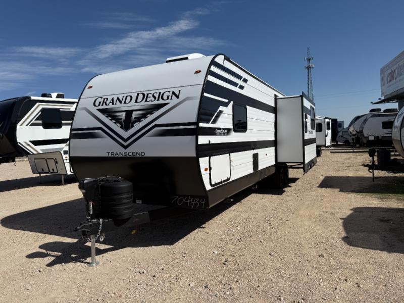 With any Transcend travel trailer by Grand Design, you will enjoy upscale appointments and convenient amenities to make each camping experience one to remember! The Quad Seal technology, residential insulated walls, plus heated and enclosed underbelly with suspended tanks make these units solid and durable. There is a black automotive glass door outside, along with a Safe-T-Rail assist on the main entry door, backup camera prep, and a universal docking station. JBL interior and exterior speakers plus a JBL head unit will let you listen to your favorite tunes as you visit under the power awning with LED strip lights. Inside, you'll enjoy multiple outlets to keep your gadgets charged, thermoformed and seamless countertops, and a 6' 6" interior height so you won't feel closed in. The Solar Prep Package will allow you to enjoy off-grid capabilities with a 200W solar panel, which is wired for up to 600W, a 30 AMP Bluetooth solar controller, a 2000W inverter prep, and more!