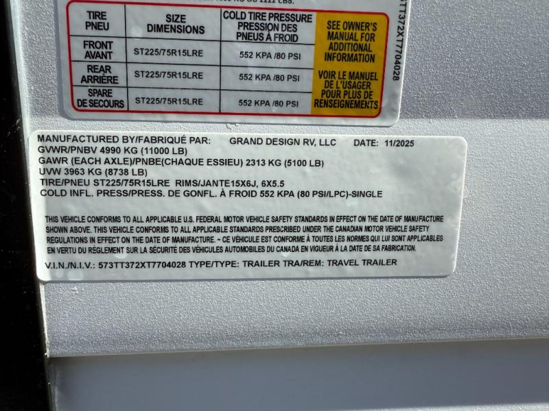 New 2026 Grand Design Transcend 325BHT Travel Trailer