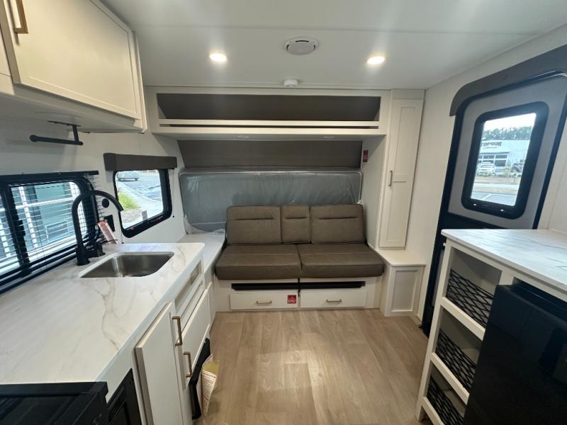 With any Transcend One travel trailer by Grand Design, you will enjoy lightweight towing thanks to their single-axle. There are many interior comforts to make camping easier than ever, such as recessed lighting, residential countertops, and a 6' 6" interior height. Each model is constructed with a heated and enclosed underbelly with suspended tanks, a moisture barrier floor enclosure, and Thermofoil over the roof and front cap for added protection. And a JBL sound system will let you listen to tunes as you visit under the power awning with a Fusion light!