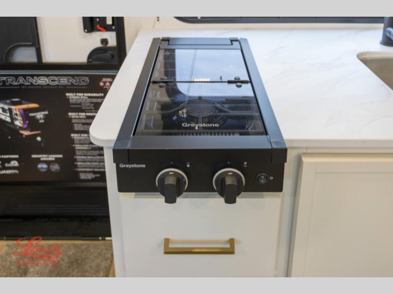 With any Transcend One travel trailer by Grand Design, you will enjoy lightweight towing thanks to their single-axle. There are many interior comforts to make camping easier than ever, such as recessed lighting, residential countertops, and a 6' 6" interior height. Each model is constructed with a heated and enclosed underbelly with suspended tanks, a moisture barrier floor enclosure, and Thermofoil over the roof and front cap for added protection. And a JBL sound system will let you listen to tunes as you visit under the power awning with a Fusion light!