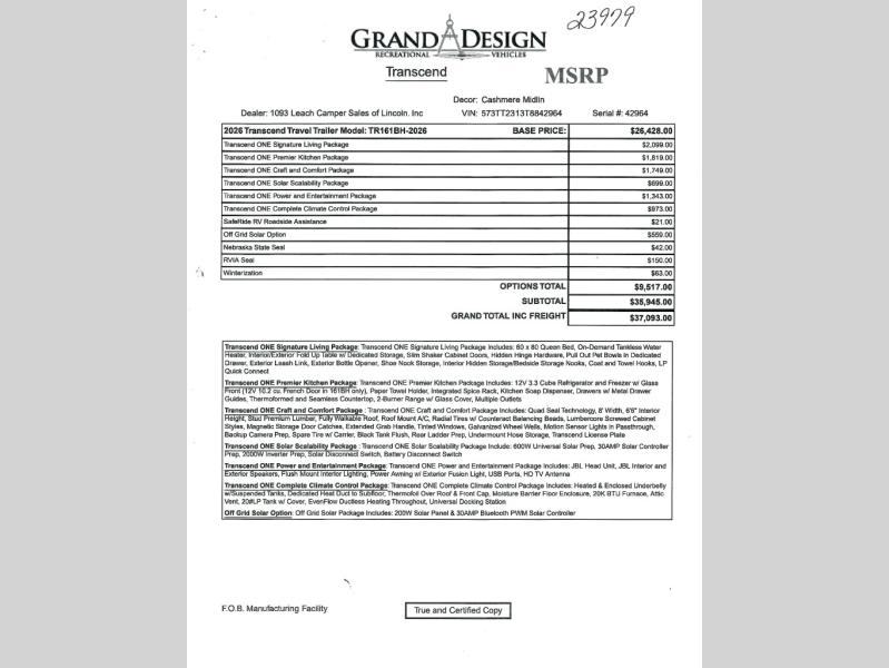 New 2026 Grand Design Transcend One 161BH Travel Trailer