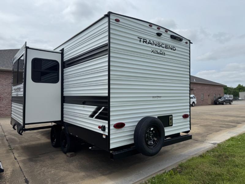 The only thing you need to worry about when you go camping is where to park this Transcend Xplor travel trailer! You'll have everything you need each day to prepare meals, including a three-burner cooktop, a microwave oven, and plenty of counter space. The front queen bed includes overhead cabinets for your books, plus underbed storage for shoes! Choose the optional theater seats in place of the dinette, and you won't even know you're away from home!