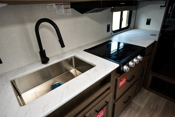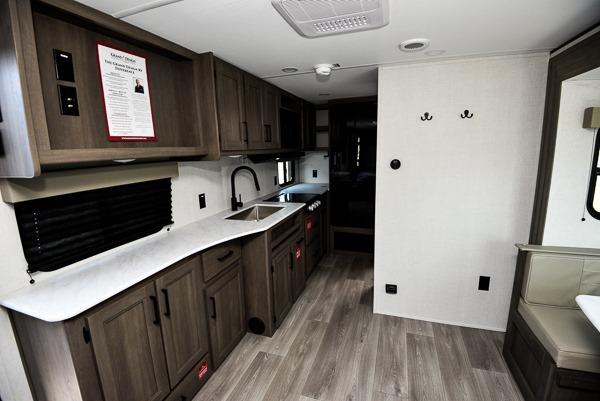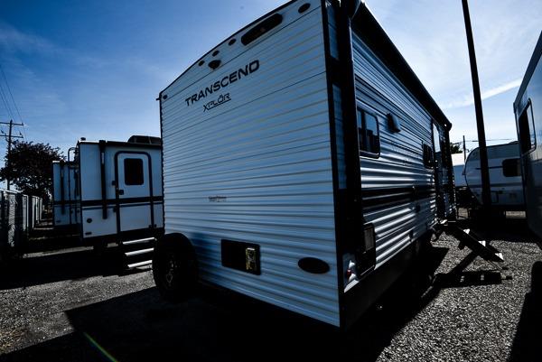 The only thing you need to worry about when you go camping is where to park this Transcend Xplor travel trailer! You'll have everything you need each day to prepare meals, including a three-burner cooktop, a microwave oven, and plenty of counter space. The front queen bed includes overhead cabinets for your books, plus underbed storage for shoes! Choose the optional theater seats in place of the dinette, and you won't even know you're away from home!