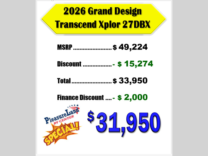 New 2026 Grand Design Transcend Xplor 27DBX Travel Trailer