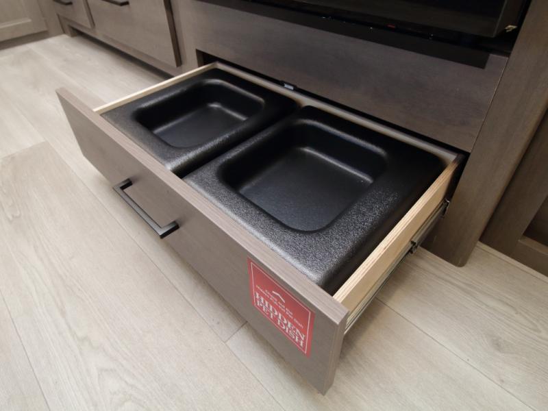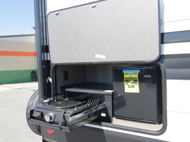 Outdoor Kitchen – Cook outdoors with the exterior griddle and 1.7 cu. ft. refrigerator under the power awning.