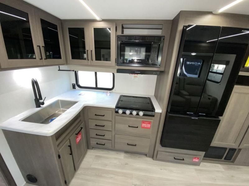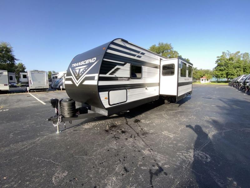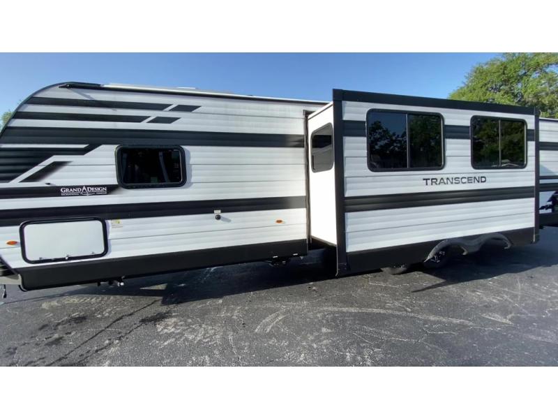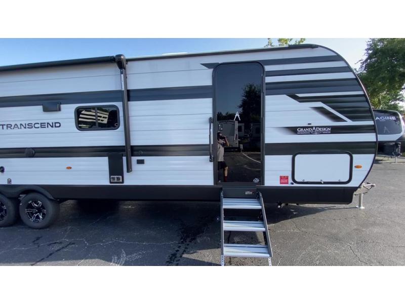 With any Transcend travel trailer by Grand Design, you will enjoy upscale appointments and convenient amenities to make each camping experience one to remember! The Quad Seal technology, residential insulated walls, plus heated and enclosed underbelly with suspended tanks make these units solid and durable. There is a black automotive glass door outside, along with a Safe-T-Rail assist on the main entry door, backup camera prep, and a universal docking station. JBL interior and exterior speakers plus a JBL head unit will let you listen to your favorite tunes as you visit under the power awning with LED strip lights. Inside, you'll enjoy multiple outlets to keep your gadgets charged, thermoformed and seamless countertops, and a 6' 6" interior height so you won't feel closed in. The Solar Prep Package will allow you to enjoy off-grid capabilities with a 200W solar panel, which is wired for up to 600W, a 30 AMP Bluetooth solar controller, a 2000W inverter prep, and more!