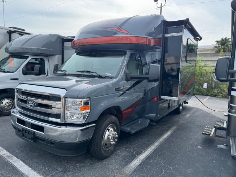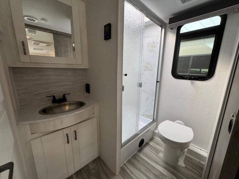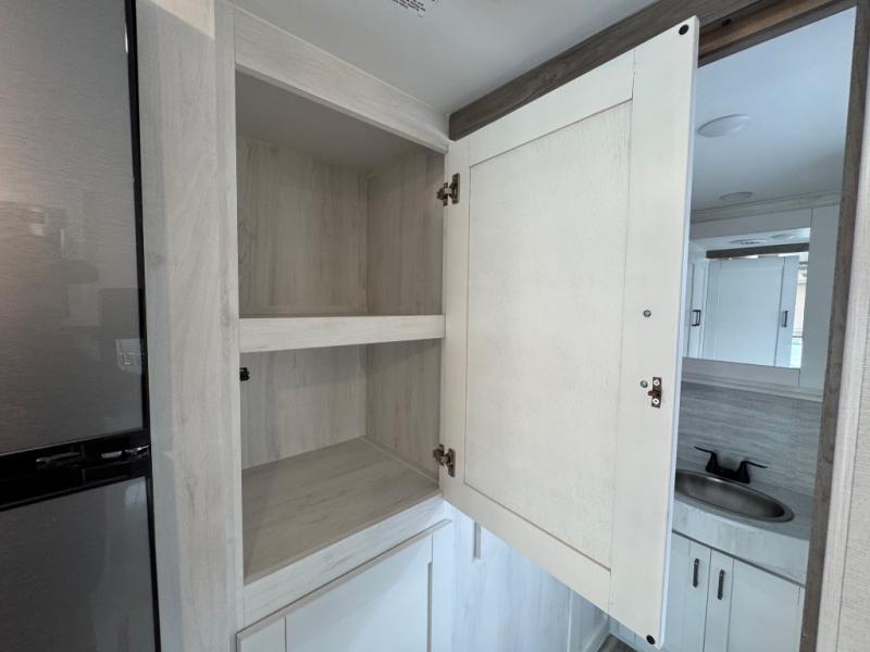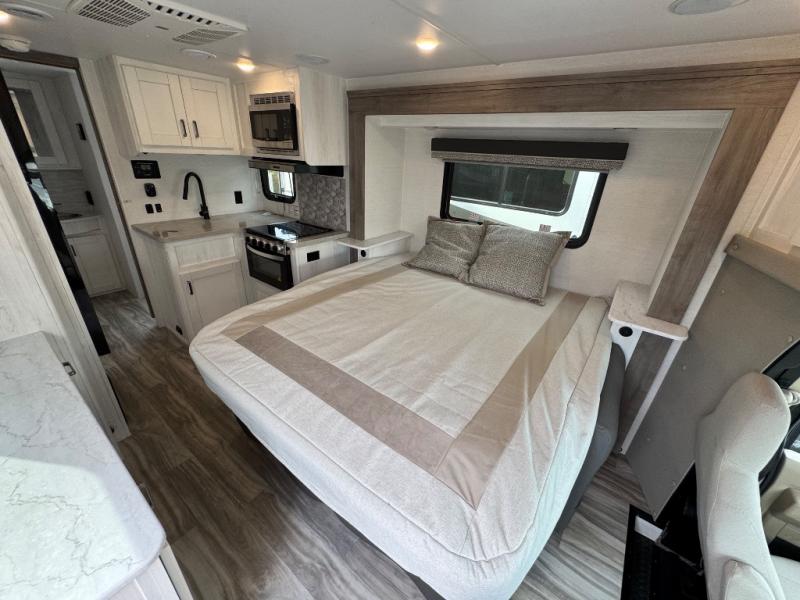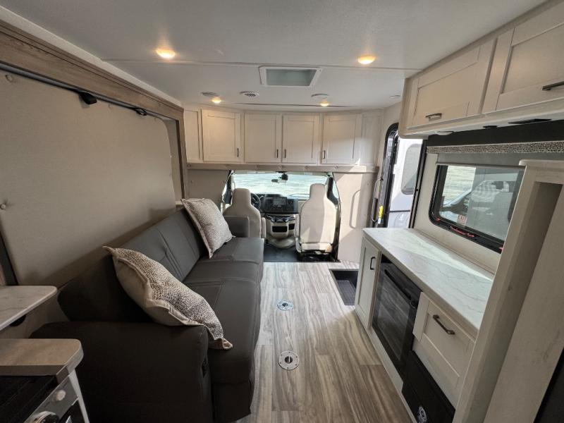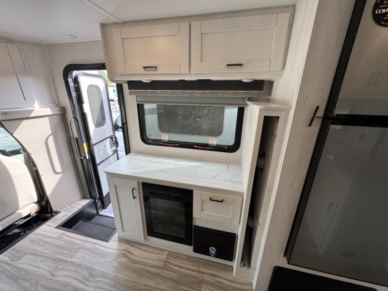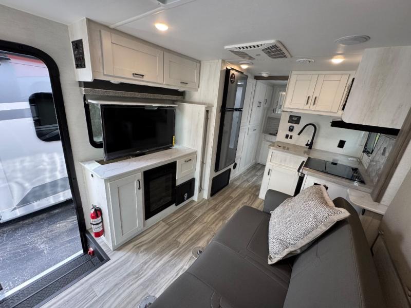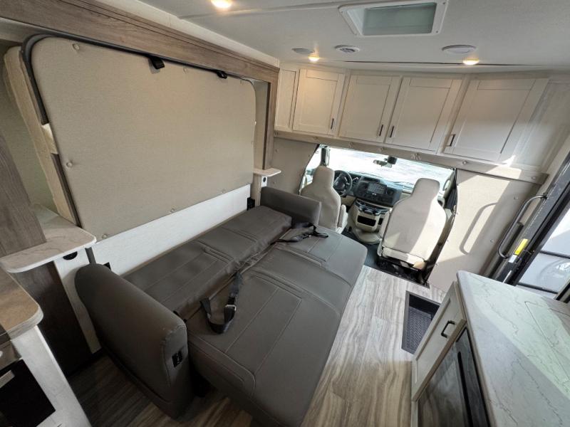 Travel to see mountains, cities, or events in this coach that offers a versatile living and sleeping space with the soft touch sofa and Murphy bed combo! You can relax indoors at the sofa and sleep in the same space at night. The kitchen area offers full amenities including a pantry to stow away the dry goods. More storage can be found in the overhead storage cabinets above the cab area which has comfortable 2-way driver and passenger seats. And this model includes a fireplace option to enjoy on fall nights!