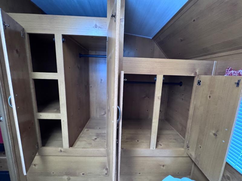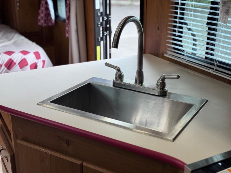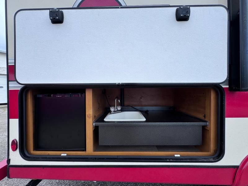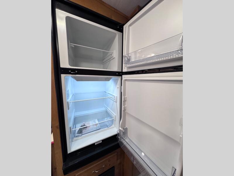 Camping trips to the lake are made complete in this roomy travel trailer for four. The U-shaped dinette slide out will provide the chef more space to cook on the cooktop. You will appreciate having your own RV queen bed up front, plus dual shirt closets and a curtain for privacy. This model also includes an exterior pass-through storage, an electric awning with LED lights, plus an outdoor snack kitchen with a sink and a refrigerator to entertain guests!