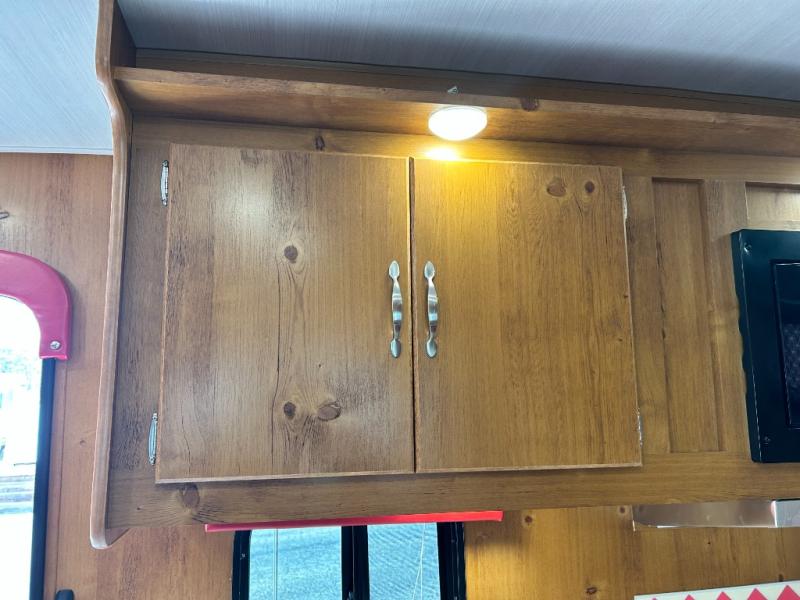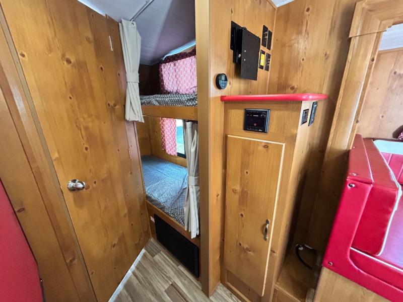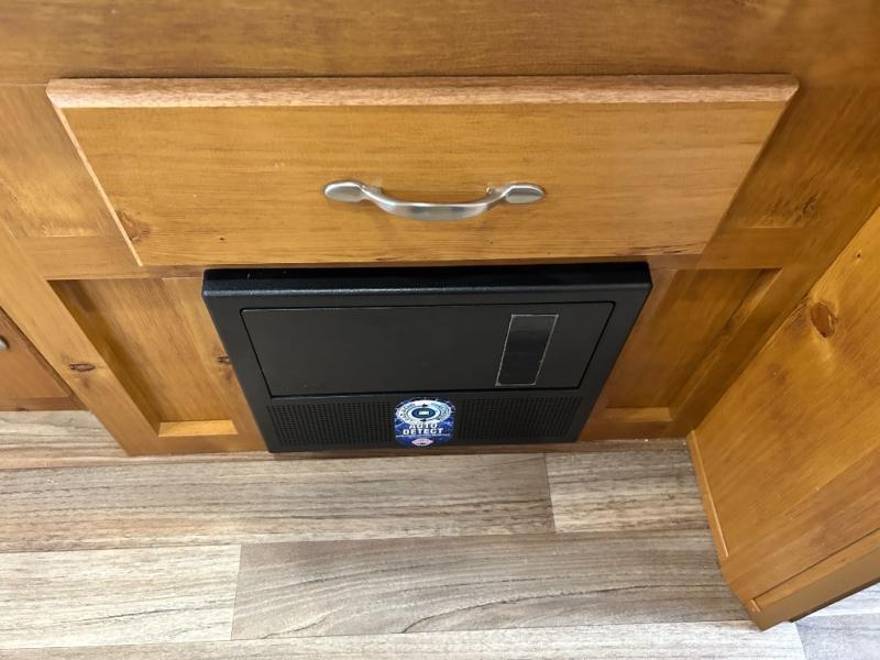 Whether you spend your days outdoors under the electric awning with LED lights, or indoors around the U-shaped dinette slide, you'll love every camping trip in this travel trailer. Prepare meals on the three burner cooktop, or use the microwave oven, plus there is an 8 cu. ft. 12V refrigerator for perishables. The bunk beds are sure to be a big hit with the kids or your guests, and you'll have your own RV queen bed up front with a privacy curtain and dual shirt closets. And of course, there is a full bath on board so you can stay clean throughout your trip!