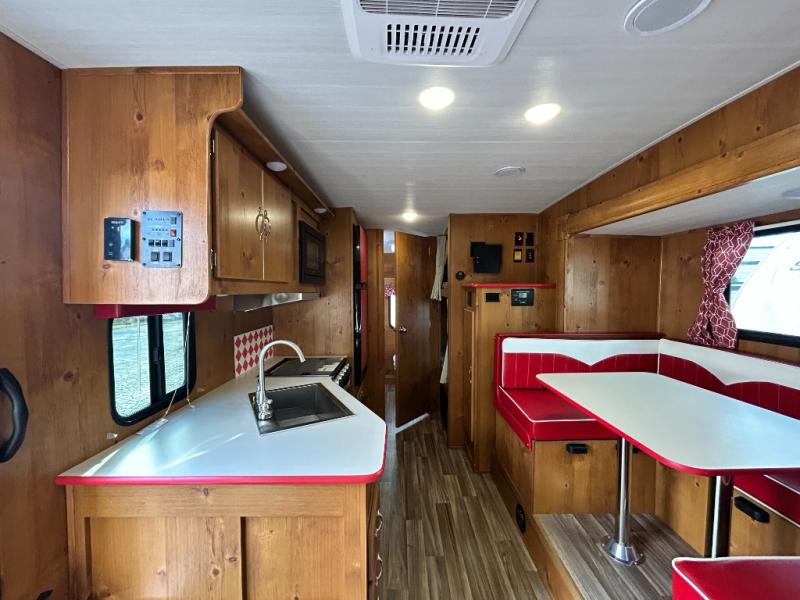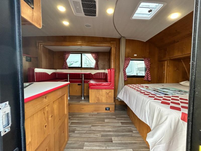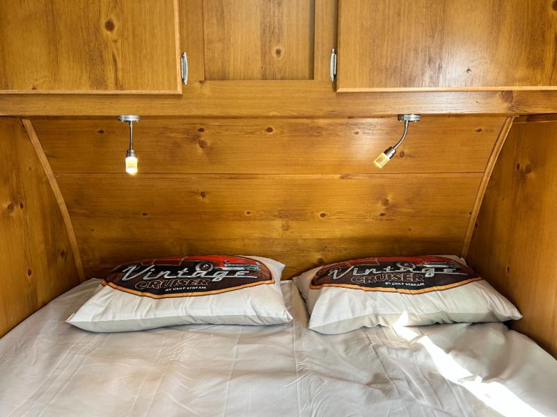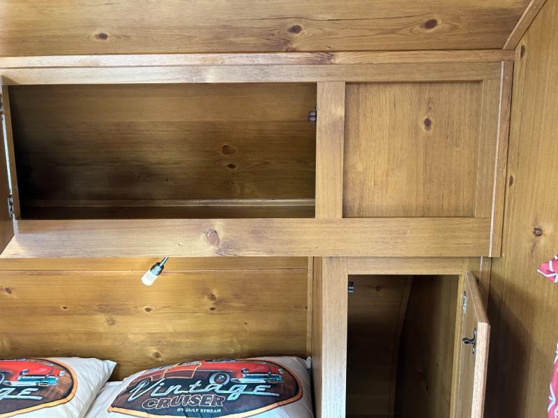 With any Vintage Cruiser by Gulf Stream you will be taken back to the fun of the 50's with vintage exterior graphics and classic interiors. Each model is constructed with a six-sided welded aluminum frame, vacuum bonded sidewalls with Azdel, and a vintage painted bumper you are sure to love. The Vintage Cruiser travel trailers include high-performance vinyl flooring, LED interior ceiling lights, a seamless tub/shower surround, and vintage flat cabinet doors to name a few comforts you'll find throughout. Some of the stand-out features found within the Vintage Package include a tankless water heater, a 100W roof-mounted solar panel with a controller, Goodyear Endurance tires, and more!