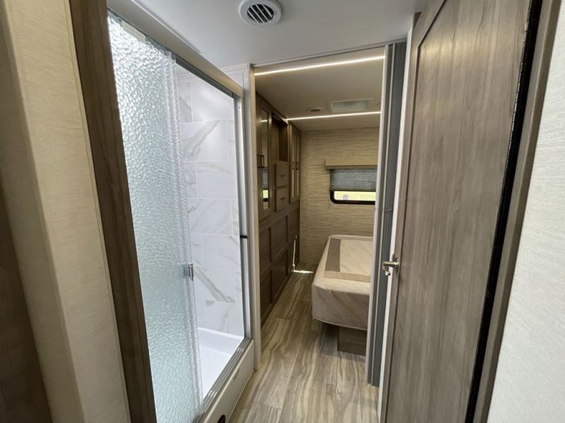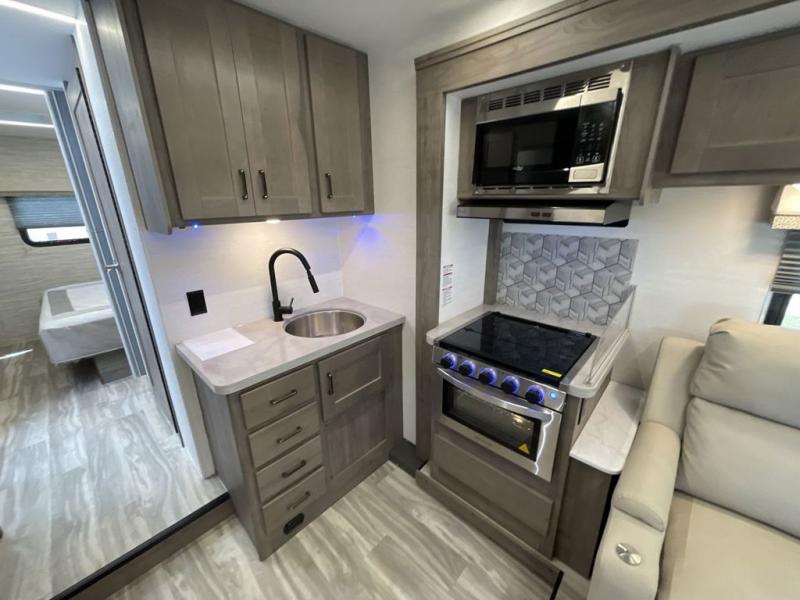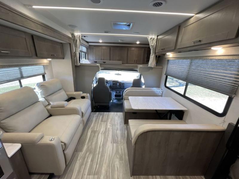 Imagine you and your family exploring new RV parks every chance you get with this Yellowstone Class C gas motorhome. The rear bedroom has a door that you can shut for privacy, and the separated bath has a sky dome above the shower for extra room to rinse off each morning. You can cook meals on the three-burner range and visit with other RVers while relaxing on the jackknife sofa.
