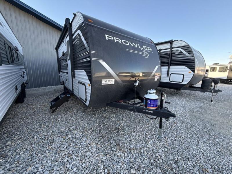 With any Prowler travel trailer, you will enjoy convenient amenities and at-home comforts wherever you decide to camp! Each one is built with a durable fully integrated A-frame, a TrussXL roof system, and galvanized wheel wells. And the self-adjusting brakes, easy-lube axles and nitrogen filled radial tires will provide smooth towing. Inside, you'll enjoy vinyl flooring throughout that will be easy to keep clean, durable, residential-inspired kitchen countertops, a residential-style high-rise kitchen faucet, and solid hardwood cabinet doors with hidden hinges and screwed stile construction. The mandatory Camping in Comfort Package includes a large folding entry door grab handle, MORryde Step Above entry steps, an on-demand tankless water heater, and stylish window shades. There are also available options that vary between single and double axle units that will allow you to customize your Prowler to fit your needs!