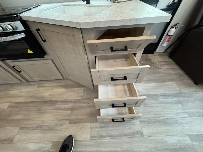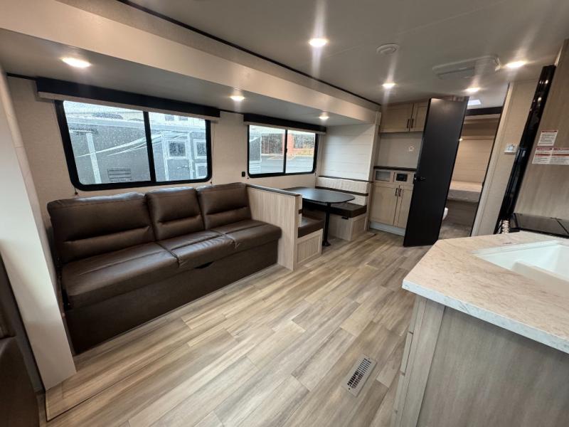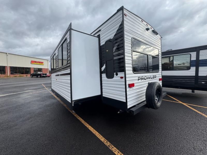 With any Prowler travel trailer, you will enjoy convenient amenities and at-home comforts wherever you decide to camp! Each one is built with a durable fully integrated A-frame, a TrussXL roof system, and galvanized wheel wells. And the self-adjusting brakes, easy-lube axles and nitrogen filled radial tires will provide smooth towing. Inside, you'll enjoy vinyl flooring throughout that will be easy to keep clean, durable, residential-inspired kitchen countertops, a residential-style high-rise kitchen faucet, and solid hardwood cabinet doors with hidden hinges and screwed stile construction. The mandatory Camping in Comfort Package includes a large folding entry door grab handle, MORryde Step Above entry steps, an on-demand tankless water heater, and stylish window shades. There are also available options that vary between single and double axle units that will allow you to customize your Prowler to fit your needs!