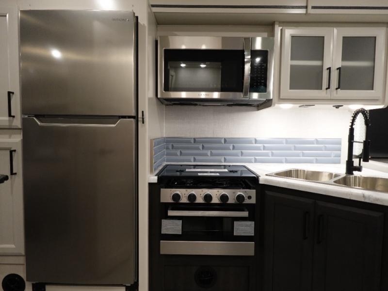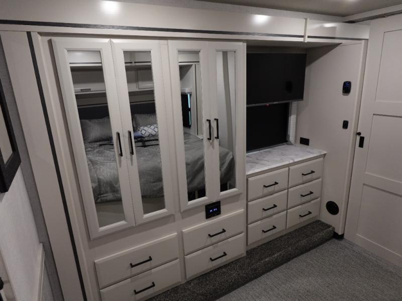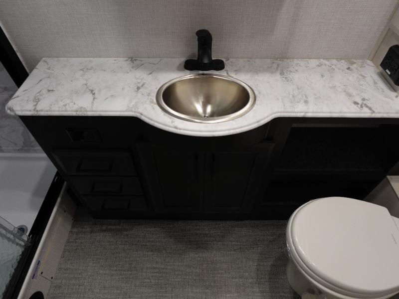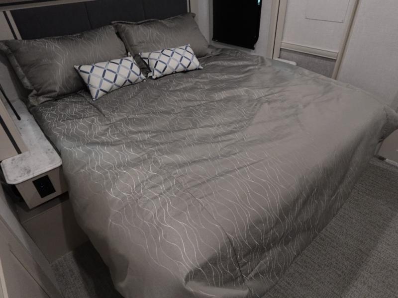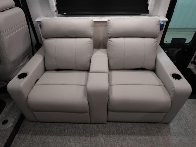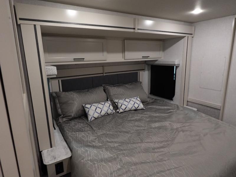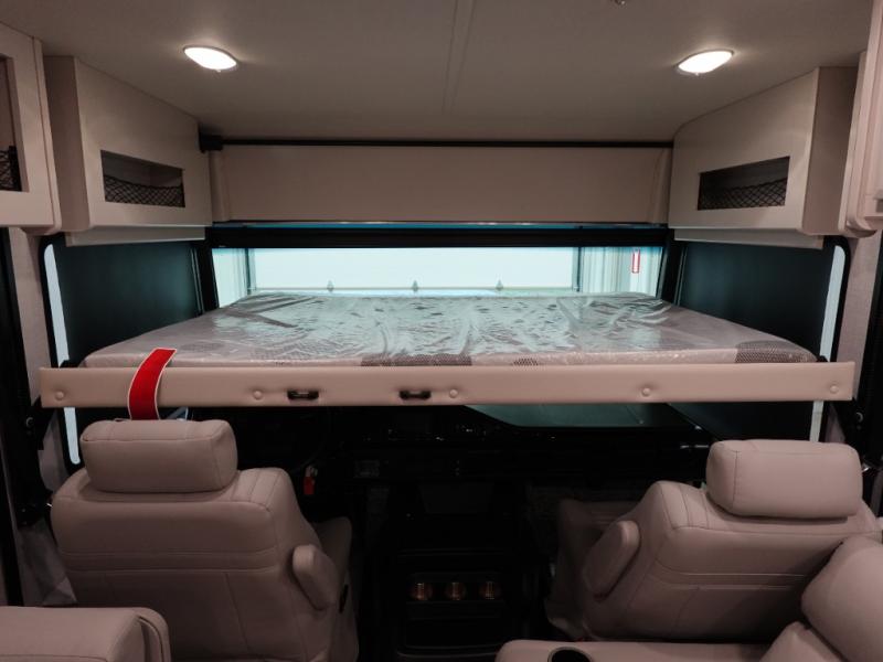 It's a clean decision to take this motorhome out on your adventures with a bath and a half! The full rear bathroom has a 30" x 36" shower to freshen up in each morning and creates a master suite by connecting to the private bedroom which has a Serenity Series king bed slide across from a wardrobe and dresser with an LED TV to watch movies in true comfort. The half bathroom is conveniently located by the fully equipped kitchen so you can take a bathroom break without worrying about your food cooking on the three burner cooktop. Enjoy your delicious meals on the Dream Dinette then relax on the jackknife sofa or head outside to watch the big game at the exterior entertainment center with LED TV. You even have exterior storage space to bring along all of your essentials!