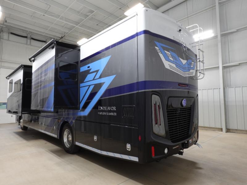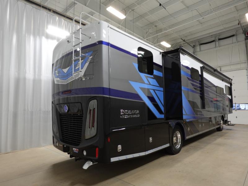 Experience luxury like never before in an Endeavor Class A diesel motorhome by Holiday Rambler. The exclusive Titan Bridge foundation with a Freightliner custom chassis XCM provides a durable coach you can enjoy for years to come, and the Cummins B6.7 engine will power your many excursions. An LED OptiView instrument panel comes standard for the driver, plus 6-way power, recline, and swivel seats and a color backup monitor for easy maneuvering. You will love having an Aqua-Hot 400D water heating system on board, along with a central vacuum system, multiplex wiring system, 100W solar panel, and many more convenient amenities. The interior is made to feel like home with porcelain tile flooring, polished solid surface galley countertops with lighting, spacious wardrobe storage, and a luxurious glass shower door in the bath. There are many more features to see outside that include an electric awnings with LED lighting, basement storage with LED lights, automatic hydraulic leveling jacks, and a King Universal stationary satellite to keep you connected wherever you go!
