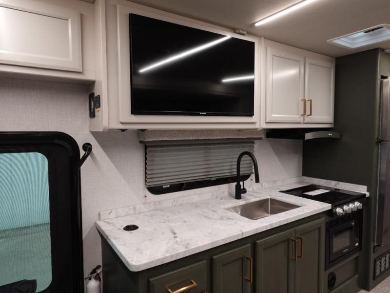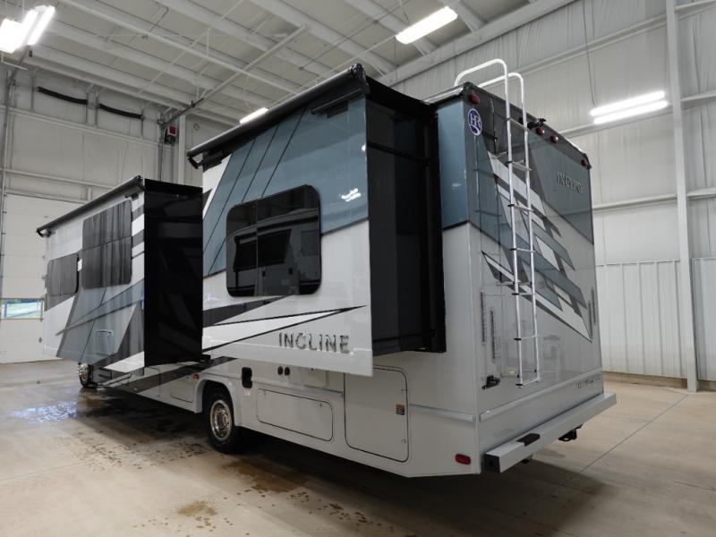 With any Incline Class C gas motorhome by Holiday Rambler, you will enjoy unrivaled performance, unbeatable storage, and luxury at every turn! You will love the journey just as much as the destination with reclining back and swivel captain's chairs and side view cameras, plus there is a Ford 7.3L V8 engine for power you can feel. Each model features painted steel frame construction with a Powerlock System ll that interlocks the walls to the roof for added durability, along with Vacu-Bond aluminum framed sidewalls, roof, and floor. Outside, you'll find automatic hydraulic leveling jacks, patio lighting, slam latch luggage door handles, and a Winegard Air 360+ that will allow you to stay connected as you travel. Head inside to find Surf-X countertops, slide out fascia with coordinating interior wood color, hidden hinge cabinet doors, kitchen backsplash, and many more comforts!