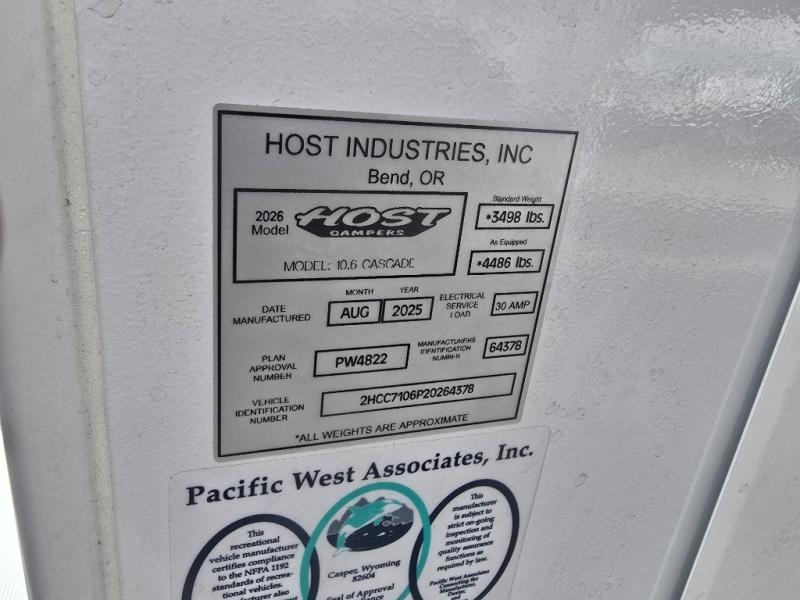 New 2026 Host Industries Host Campers Cascade 10.6 Truck Camper