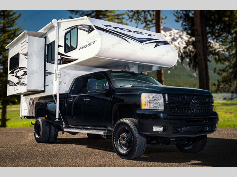 With any Host Industries Host Campers truck camper, there is ease of setting up with electric jacks with a wireless remote, and security when traveling thanks to the heavy duty camper tie down brackets. Each is constructed with two or three slide outs giving you more interior space on an Ultralite 100% aluminum structure with vacuum bonded foam insulated walls, a floor and a ceiling, plus there is a one-piece TPO roof. Some conveniences include an enclosed service center, enclosed and heated holding tanks, large J-rail rain gutters, and access panels for the slide out motors, water tank and holding tanks to mention a few. And the interior is just as impressive from the style, decor choices, the 12 volt LED lighting system, the Grani-coat solid surface countertops, and the many options you can add to customize your Host Camper!