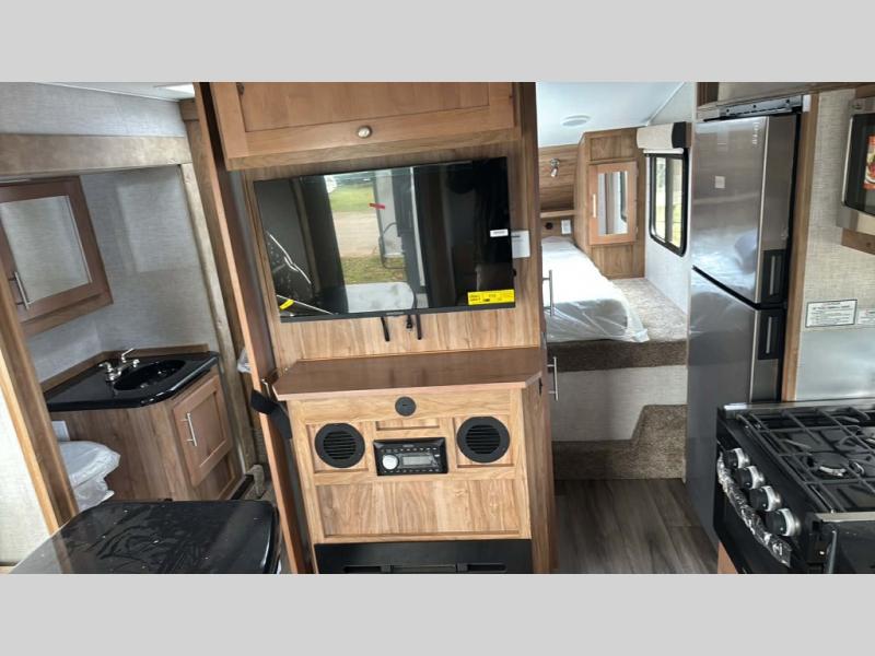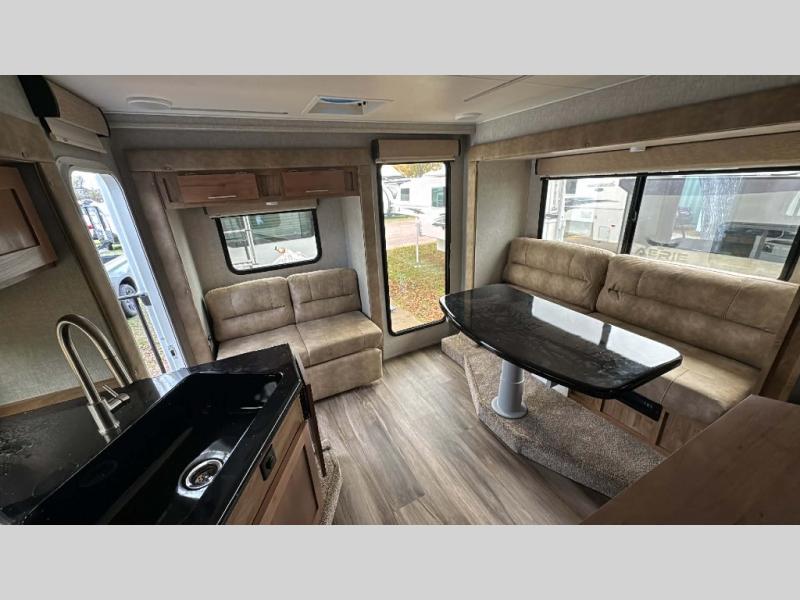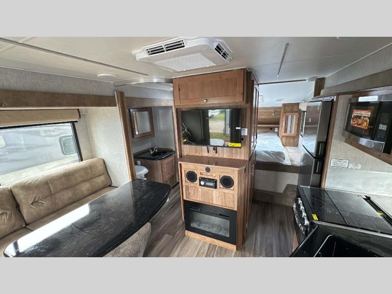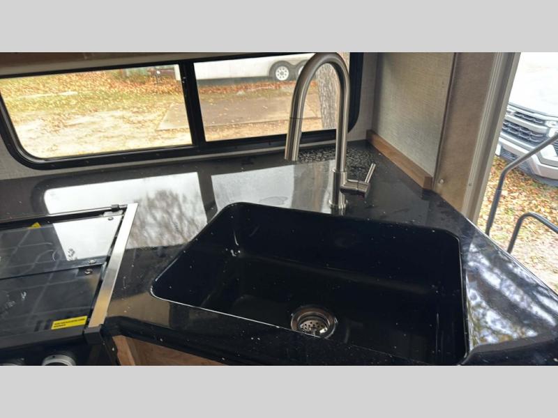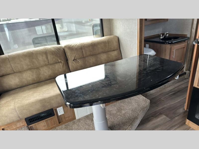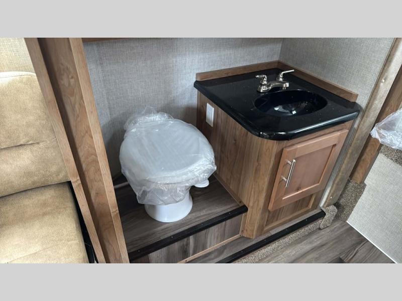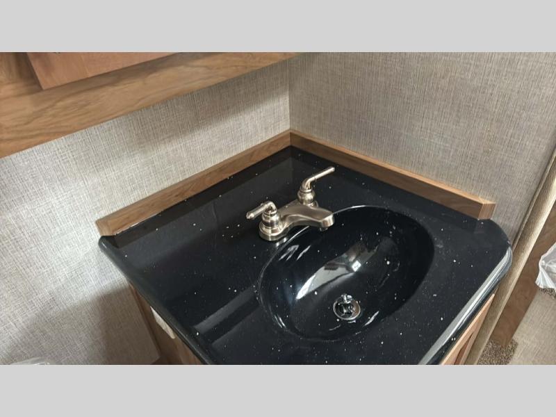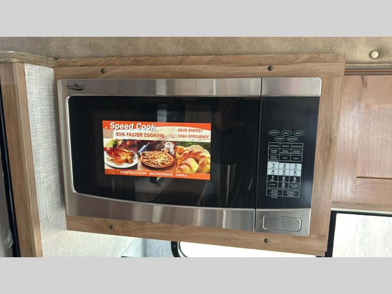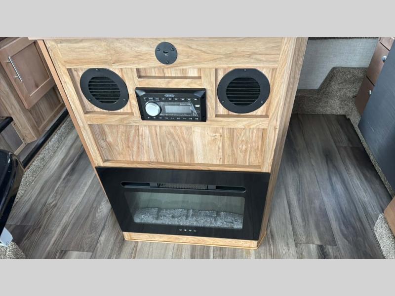 Luxury, convenience and outdoor adventure are just inside and around the corner in this truck camper! There is a queen bed or king option, dual wardrobes and dual entrances into the bedroom, and a second wardrobe for your clothes. You can dine, play games and work at the U-shaped dinette, plus relax on the sofa slide while watching your favorite shows on the flat screen TV above a fireplace for a cozy evening. The full bathroom will keep you refreshed, the pantry allows you to store lots of goodies, and the triple slides give you the interior space you are looking for.
