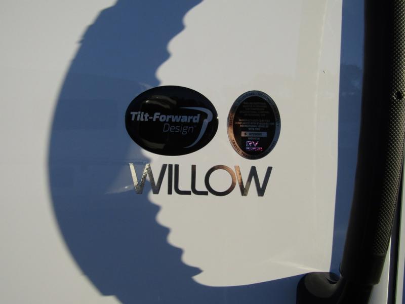 Pack your bags for a new adventure in this Willow travel trailer. You and your spouse or camping friend will love the natural light that streams in from the panoramic windows as you relax on the U-shaped dinette. Prepare meals each day on the two burner stainless steel cooktop or use the convection microwave, and you'll find plenty of overhead cabinets for all your necessities. This model features a private toilet and sink, with the shower right across the hall so two people can freshen up at once. When it's time to call it a night, you can rest comfortably on the twin beds, and the 32" bedroom TV will allow you to watch a late-night movie in bed! If you like to have your own space at night, just choose the optional twin beds! This model also has a dry weight that ranges from 5,650-5,850 lbs., a tongue weight between 725-790 lbs., and a carrying capacity between 1,650-1,850 lbs. You may also like to choose the optional Rover Package that includes a 3" lift, an aluminum tube rear bumper, rugged decals, and more!