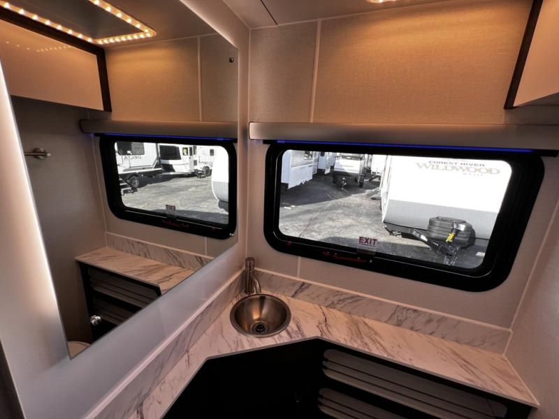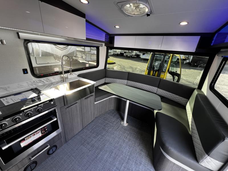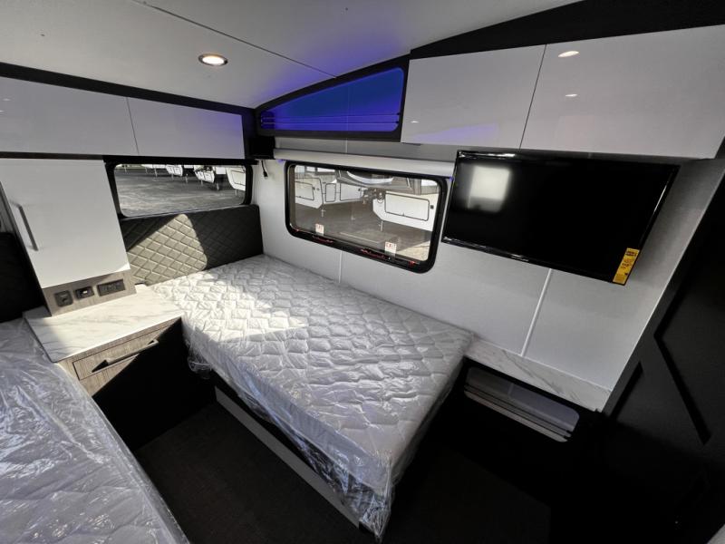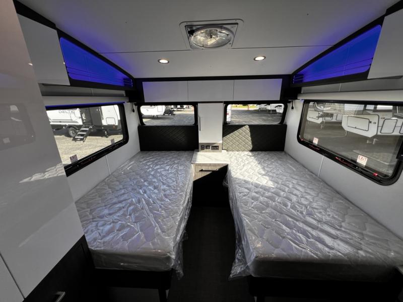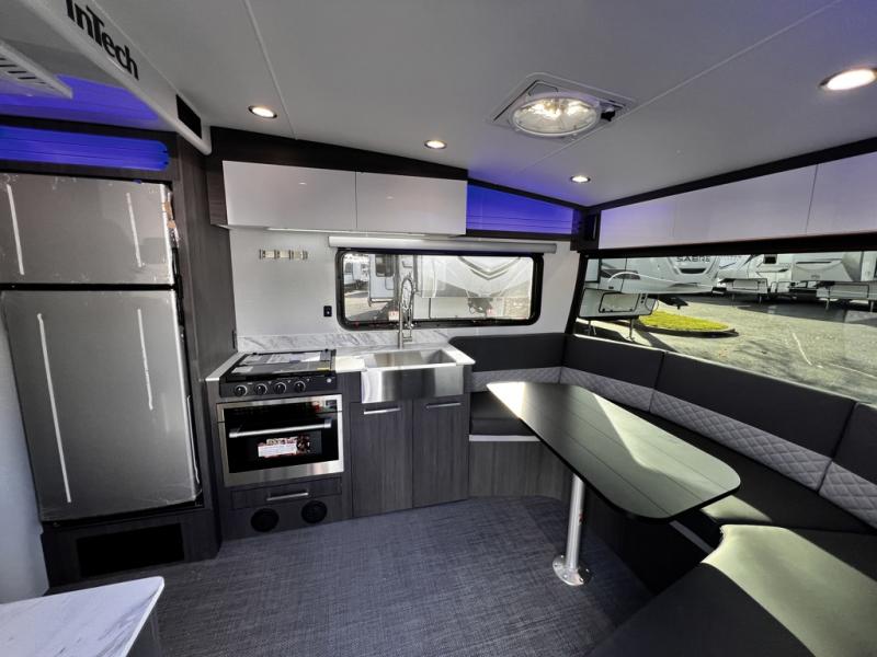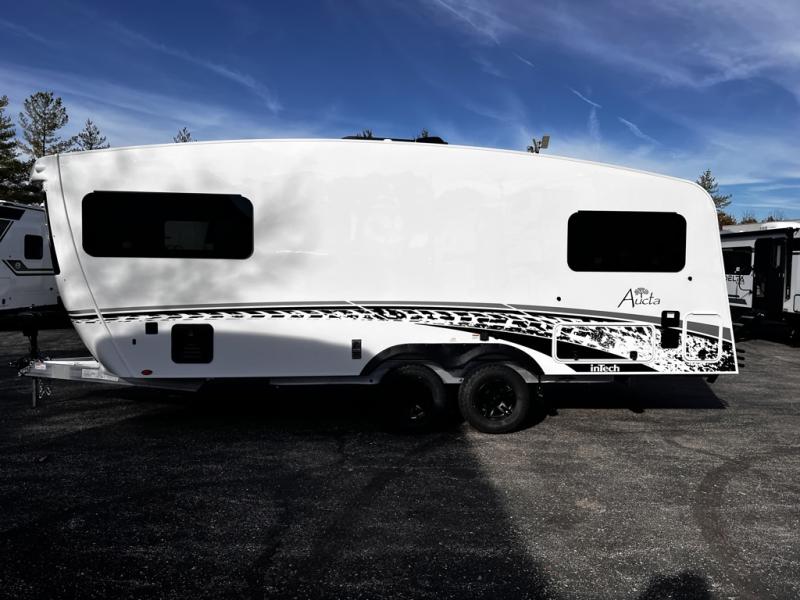 With any Aucta travel trailer by inTech RV you will enjoy creative interior spaces, luxury features, and smart storage spaces for a one-of-a-kind trailer. The one-piece fiberglass roof, all-aluminum cage frame, and Dexter torsion axle provide durable construction and smooth towing, and the fold-away double entry steps and power tongue jack will make set-up easier than ever. Inside, you'll find Infinity woven flooring, a large farmhouse sink, USB ports and 120V outlets, plenty of storage compartments, and MaxxAir vent fans to keep everything fresh. These models also include bubble foil insulation in the walls and ceiling, along with a 25K BTU furnace and a 15K BTU A/C so you can make memories year around!