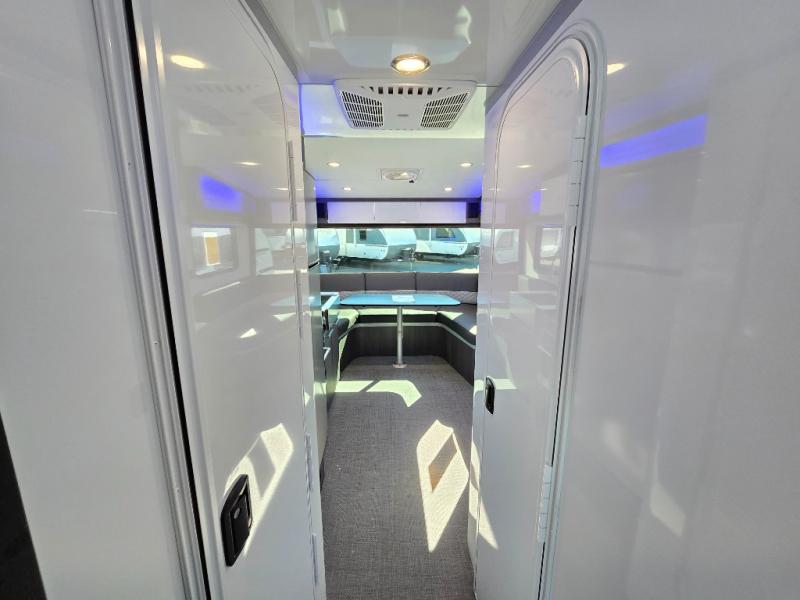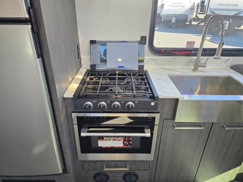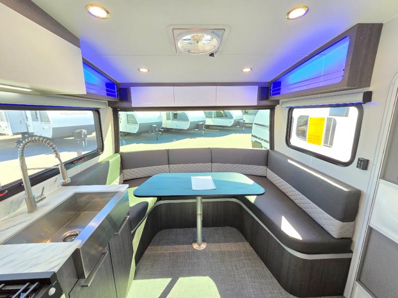 With any Aucta travel trailer by inTech RV you will enjoy creative interior spaces, luxury features, and smart storage spaces for a one-of-a-kind trailer. The one-piece fiberglass roof, all-aluminum cage frame, and Dexter torsion axle provide durable construction and smooth towing, and the fold-away double entry steps and power tongue jack will make set-up easier than ever. Inside, you'll find Infinity woven flooring, a large farmhouse sink, USB ports and 120V outlets, plenty of storage compartments, and MaxxAir vent fans to keep everything fresh. These models also include bubble foil insulation in the walls and ceiling, along with a 25K BTU furnace and a 15K BTU A/C so you can make memories year around!