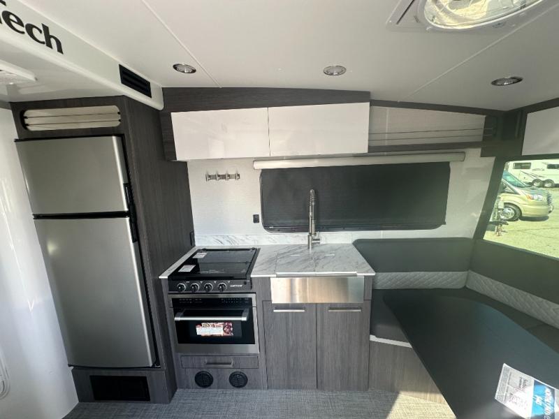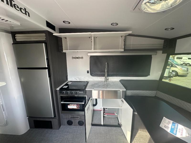 With any Aucta travel trailer by inTech RV you will enjoy creative interior spaces, luxury features, and smart storage spaces for a one-of-a-kind trailer. The one-piece fiberglass roof, all-aluminum cage frame, and Dexter torsion axle provide durable construction and smooth towing, and the fold-away double entry steps and power tongue jack will make set-up easier than ever. Inside, you'll find Infinity woven flooring, a large farmhouse sink, USB ports and 120V outlets, plenty of storage compartments, and MaxxAir vent fans to keep everything fresh. These models also include bubble foil insulation in the walls and ceiling, along with a 25K BTU furnace and a 15K BTU A/C so you can make memories year around!