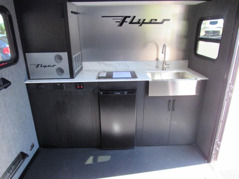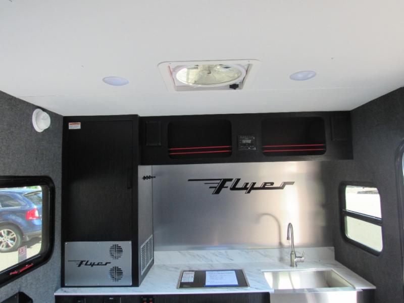 This Flyer expandable toy hauler is perfect for all your outdoor adventure! Not only does this toy hauler provide you with a spacious and versatile interior, but it also gives you a desirable cargo space so that you can bring along some toys for the adventure. This expandable comes standard with one tip-out bed, but you can easily add on the second optional tip-out bed which will add lots of extra room for sleeping and relaxing. The other feature found on this Flyer that is going to make your trips truly effortless is the front kitchen that comes with a two-burner stainless steel cooktop, a 3.1-cubic foot refrigerator, a large farmhouse sink, and an 8.5-gallon fresh water tank. This expandable toy hauler has a dry weight and net carrying capacity that ranges from 2,440-2,760 LBS.