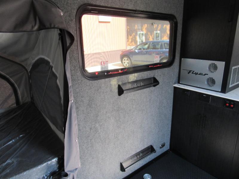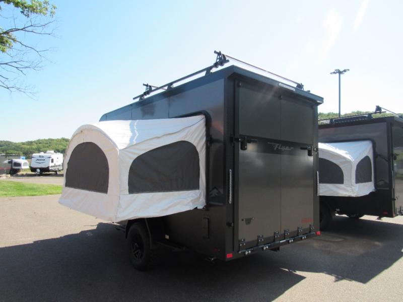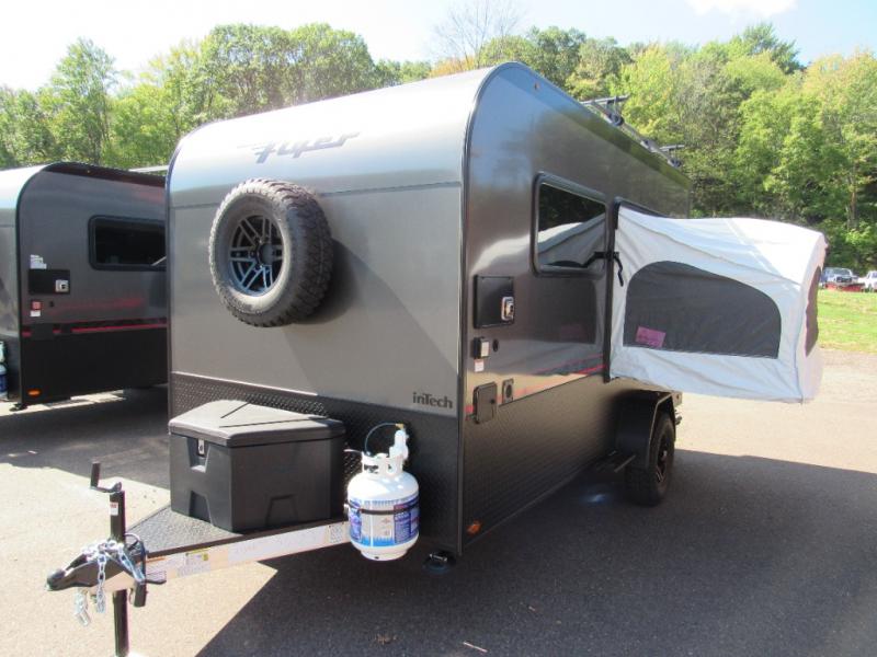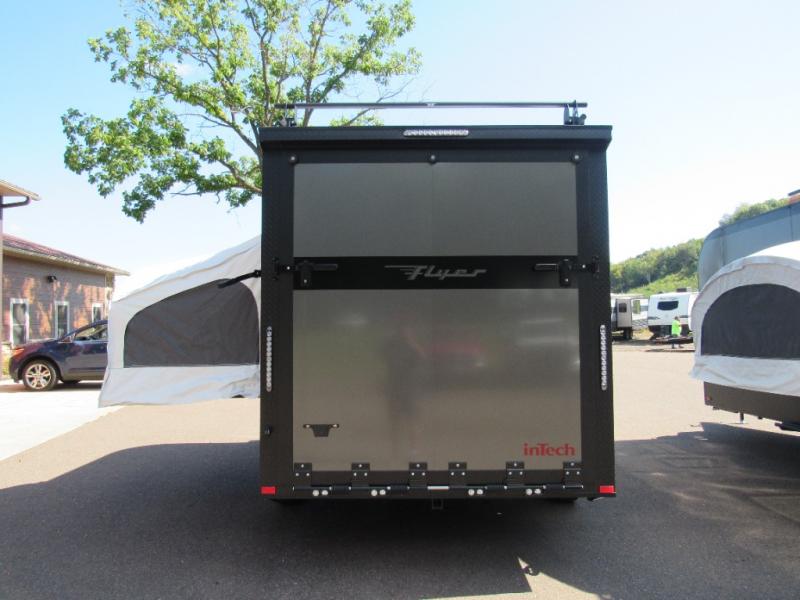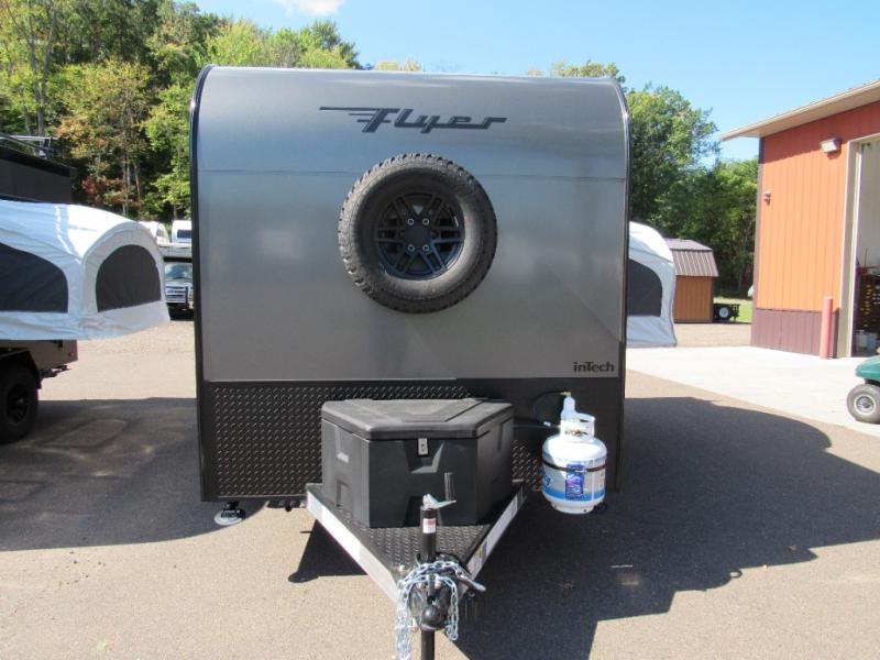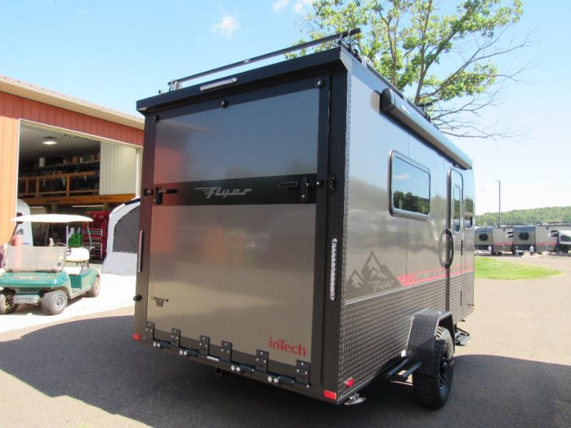 The inTech RV Flyer travel trailers and toy hauler expandables are ready for adventure whenever you are! With the all-aluminum, all-tube cage frame, the Flyer has been built with lightweight and long-lasting materials so that you can enjoy your unit for many, many years. The Flyer has a rugged design so that you can confidently explore new territory and go where traditional RVs cannot. The Flyer has a 2" rear receiver rated for 175 pounds which allows you to bring along your bikes, and the Bluetooth stereo has two speakers you can always have your best music playing. The optional roof rack will allow you to bring along kayaks, and there are more available options depending on the model you choose.