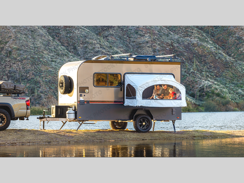 The inTech RV Flyer travel trailers and toy hauler expandables are ready for adventure whenever you are! With the all-aluminum, all-tube cage frame, the Flyer has been built with lightweight and long-lasting materials so that you can enjoy your unit for many, many years. The Flyer has a rugged design so that you can confidently explore new territory and go where traditional RVs cannot. The Flyer has a 2" rear receiver rated for 175 pounds which allows you to bring along your bikes, and the Bluetooth stereo has two speakers you can always have your best music playing. The optional roof rack will allow you to bring along kayaks, and there are more available options depending on the model you choose.