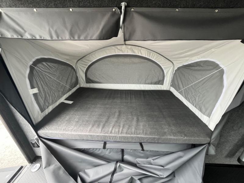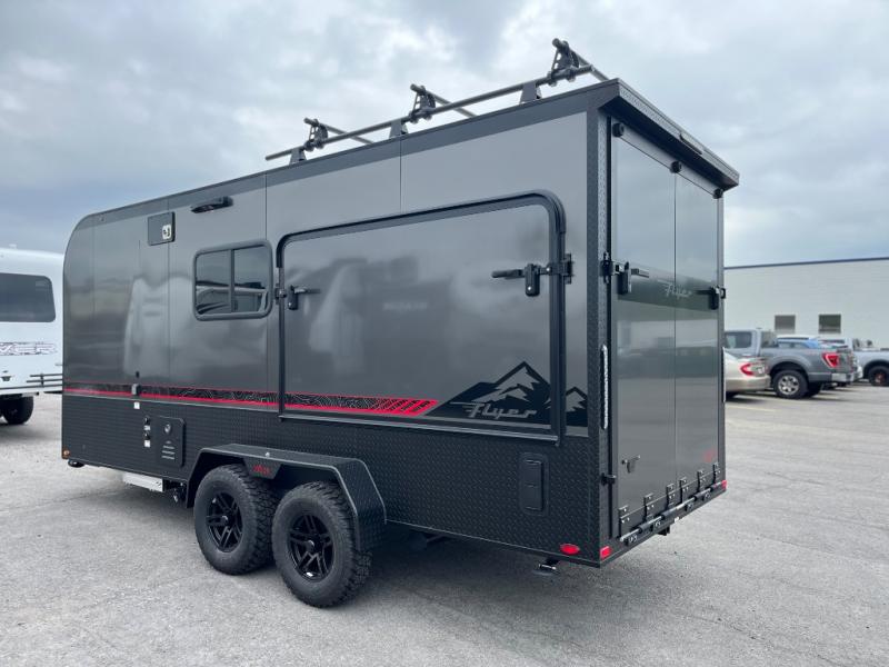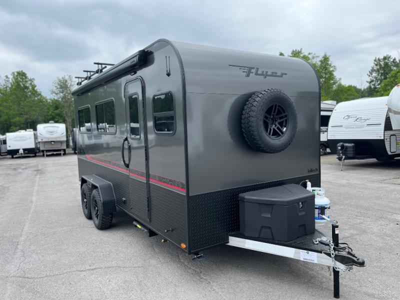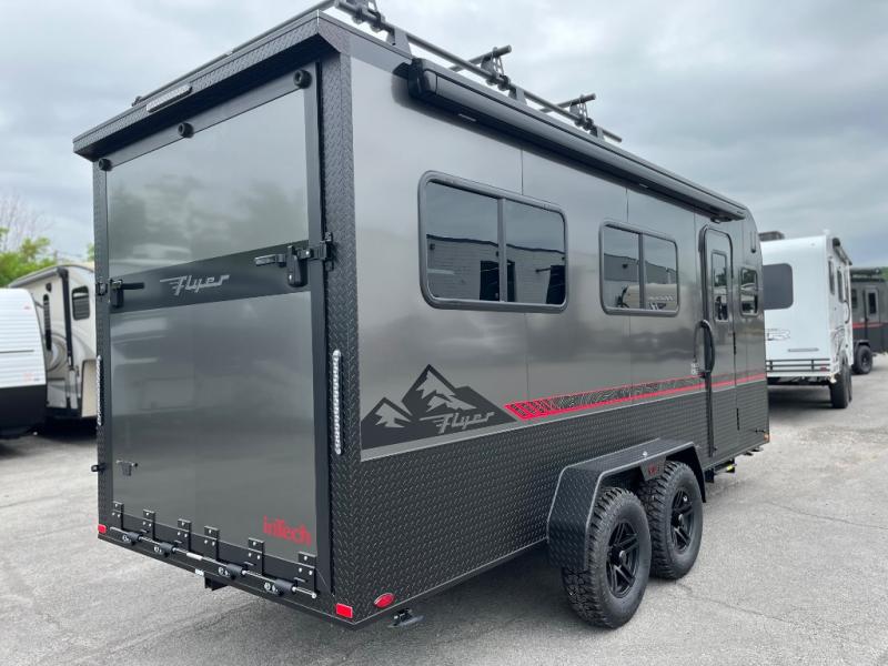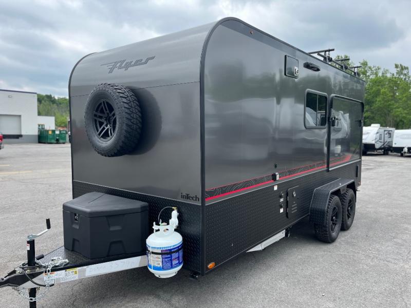 The inTech RV Flyer travel trailers and toy hauler expandables are ready for adventure whenever you are! With the all-aluminum, all-tube cage frame, the Flyer has been built with lightweight and long-lasting materials so that you can enjoy your unit for many, many years. The Flyer has a rugged design so that you can confidently explore new territory and go where traditional RVs cannot. The Flyer has a 2" rear receiver rated for 175 pounds which allows you to bring along your bikes, and the Bluetooth stereo has two speakers you can always have your best music playing. The optional roof rack will allow you to bring along kayaks, and there are more available options depending on the model you choose.