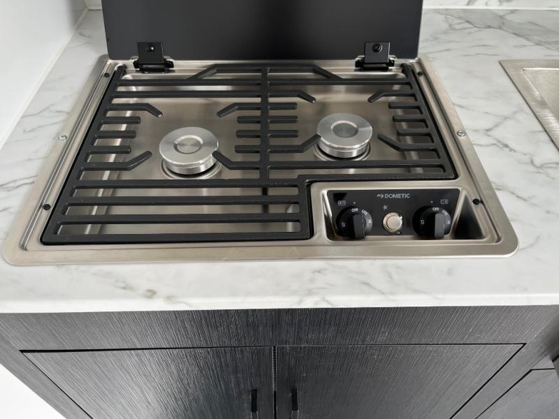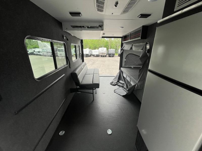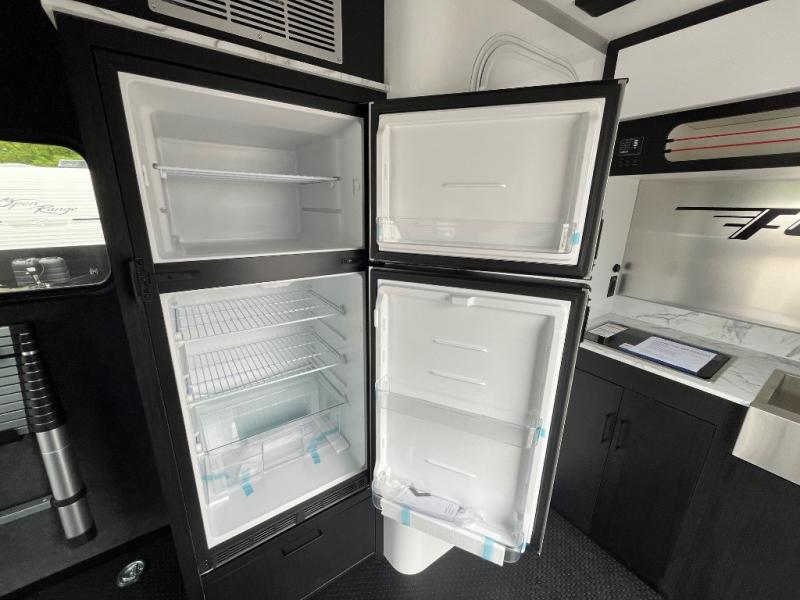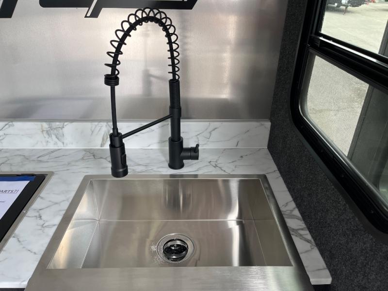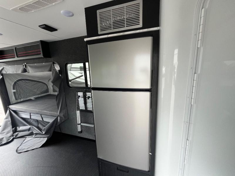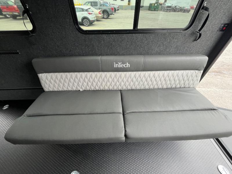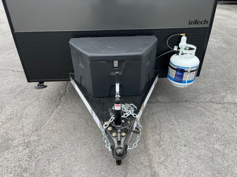 You asked for it and inTech RV delivered with this toy hauler expandable! You will enjoy some of the same features as the Discover model, but will also appreciate a wet bath in the Forge. There is a porcelain toilet, aluminum walls with a sealing exterior door so you don't need a shower curtain, storage space, and even a bath roof vent with an onboard switch! The kitchen includes everything you need to cook meals each day, including a two burner cooktop, a large farmhouse sink, and a spacious 8 cu.ft. 12V refrigerator! The 80" x 160" garage floor space features durable black coin flooring and is large enough to bring in most side-by-sides, plus there are tie-downs to keep your toys secure. For sleeping space, you'll find a tip-out bed and a standard sleeper sofa, and if you have more campers tagging along, you can add the optional drop-down bunk, or even bring your own air mattress! A few more stand-out features you'll love on the Forge are the on-demand LP water heater, the aluminum walk-on roof, tinted windows, and Airline Track sidewall tie-down area! The dry weight for this model ranges from 3,845 lbs. - 4,300 lbs., and the carrying capacity ranges from 2,700 lbs. - 3,155 lbs.