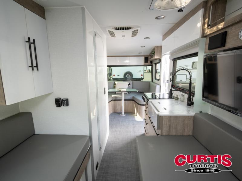 With any Sol travel trailer by inTech RV you will find strong, durable construction consisting of lightweight aluminum that is easier to tow and resists rust, water, and dents. The Tilt-Forward Design creates more space inside so you can stretch out, and the panoramic windshield gives a great view of the mountains, ocean, or forest! The elegant interior features tinted windows with shades, Infinity woven flooring, and a stainless steel cooktop and microwave. You will stay comfortable year around since these models include a 15K BTU A/C and a 16K BTU furnace. The optional Rover Package can also be added that features rugged decals, off-road tires with a 3" lift, two different color choices to choose from, plus more!